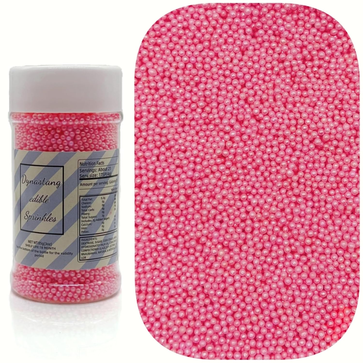 Dynastang 2mm Dark Pink Pearls Sprinkles Edible Pearls Cake Decorating Stars Cake Decorations Cupcake Toppers Cookie Decorating Perfect for Cakes, Cupcakes, Desserts Toppings 3OZ