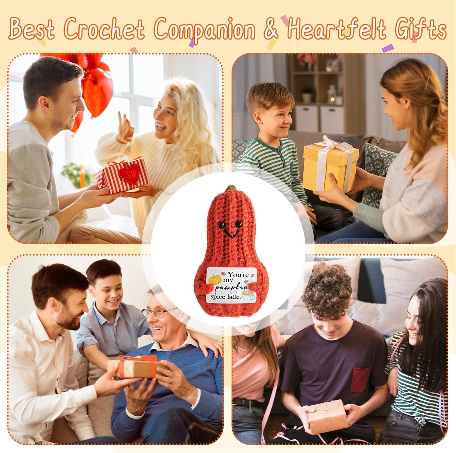Little Reminders Emotional Support Crochet Pumpkin,Positive Crochet Pumpkin with Positive Affirmations Cards,Daughter's Gifts for Mother,Birthday and Catholic Christian Decor,Desk Decoration