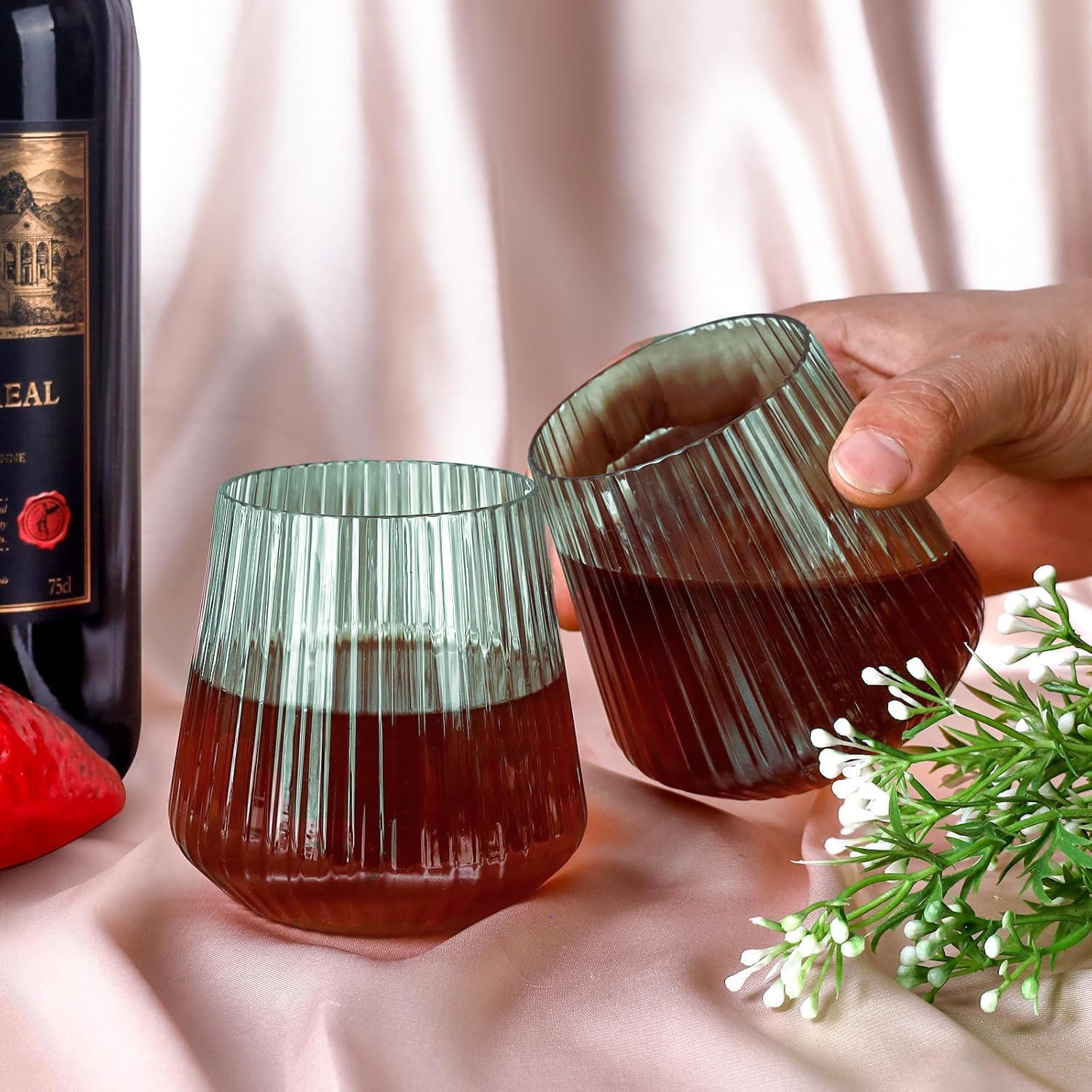 - ăStemless Wine Glasses BulkăOur value pack comes with 40 stemless wine glass, each with a maximum capacity of 14-ounces.
