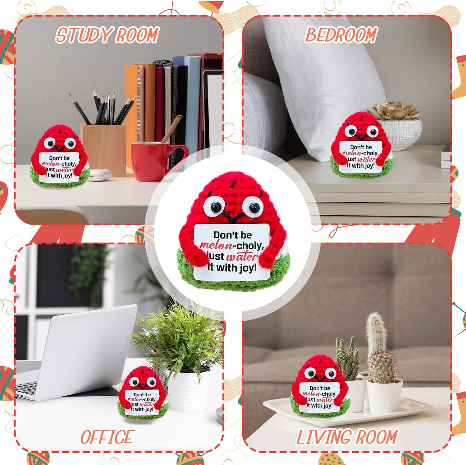 Emotional Support Crochet Watermelon,Lovely Gift for Friends,Mom,Dad,Grandpa,Grandma,Colleagues,Classmates,Graduation Gift,Home Office Decoration