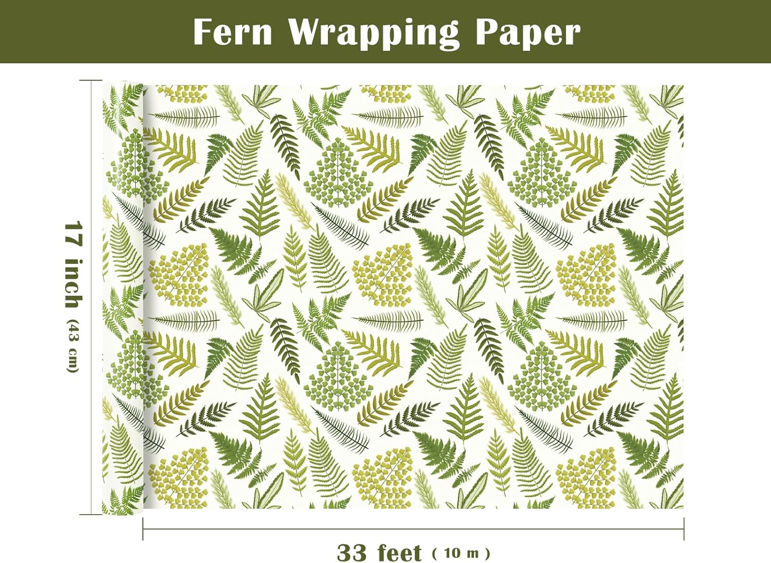 WRAPAHOLIC Fern Wrapping Paper Roll - Mini Roll - 17 Inch x 33 Feet - Woodland Fern Botanical Wrapping Paper Perfect for Birthday, Wedding, Baby Shower