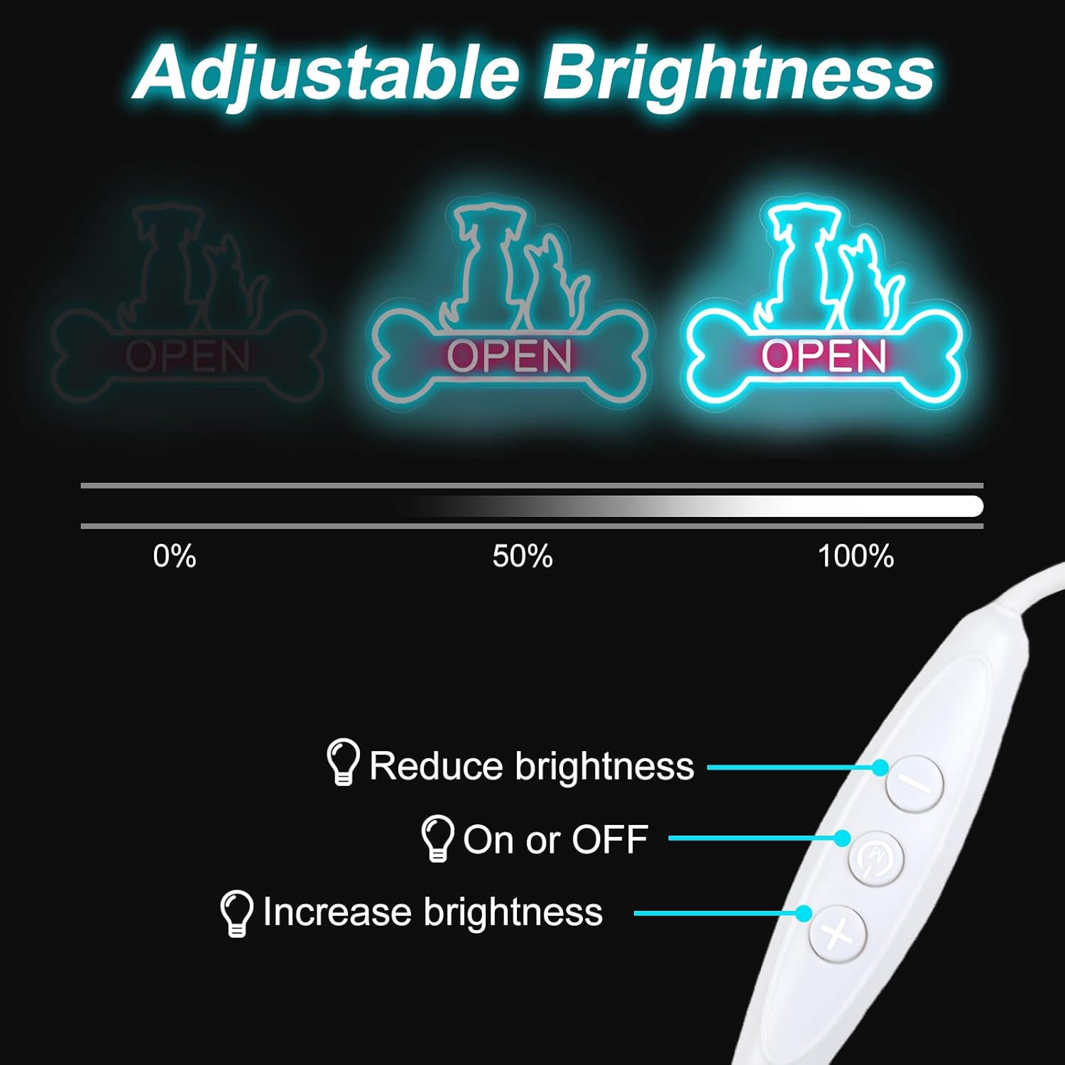- What you get: Pet shop open neon sign x1, hanging chain x1, wall hooks x2. Every LED light undergoes rigorous quality checks before it ships. If you have any problem with our neon light, please feel free to contact us. We will try our best to serve you