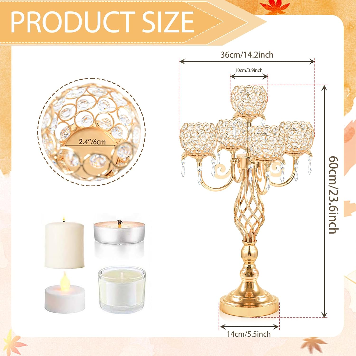 - Elegant and Luxurious Design:This is a piece made of premium gold-tone metal and timeless crystals. The 23.6-inch tall exquisite centerpiece instantly sets the mood for a grand celebration or an intimate gathering.