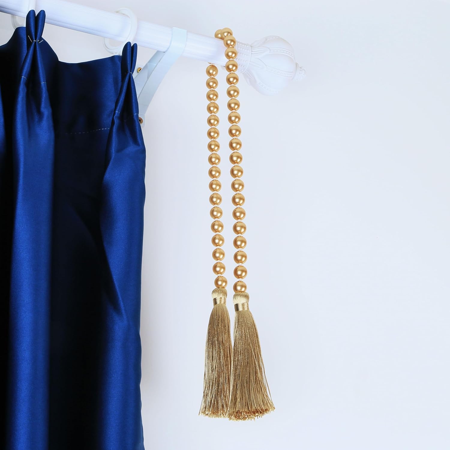 Fenghuangwu 34 Inch Pearl Glass Bead Garland with Tassels - Elegant Boho Table Decor, Fringe Wall Hanging for Wedding, Party, Farmhouse Rustic Prayer Bead Home Decoration(1 Pack,Champagne Gold)