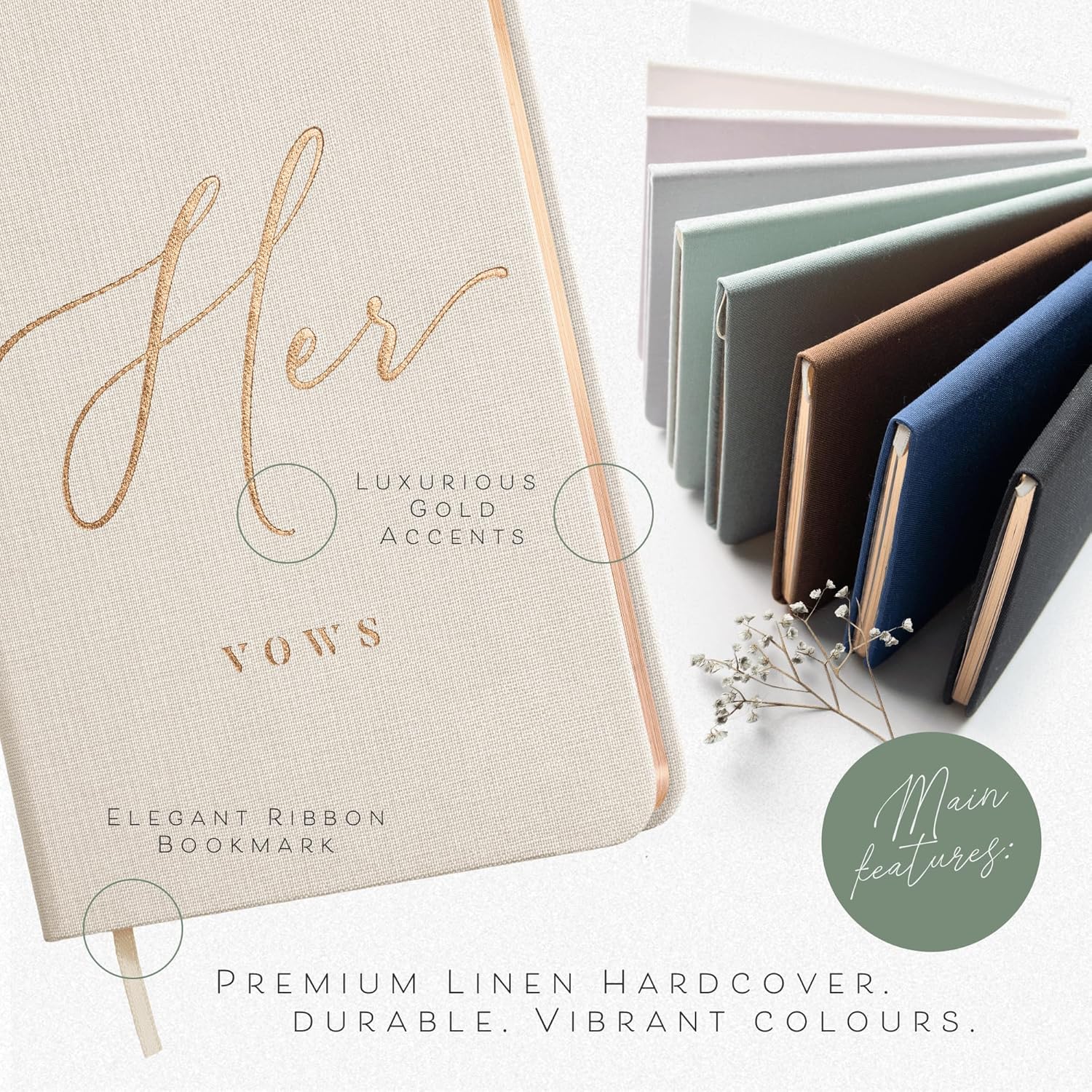 - PREMIUM LINEN COVER & COLOR COMBOS: Each set includes two his her vows book with a sophisticated linen-textured cover, available in six elegant color combinations: Terracotta & Ivory, Black & Ivory, Navy & White, Sage & Mint, Grey & Blush, Black & White. Ideal wedding accessories for your special day!