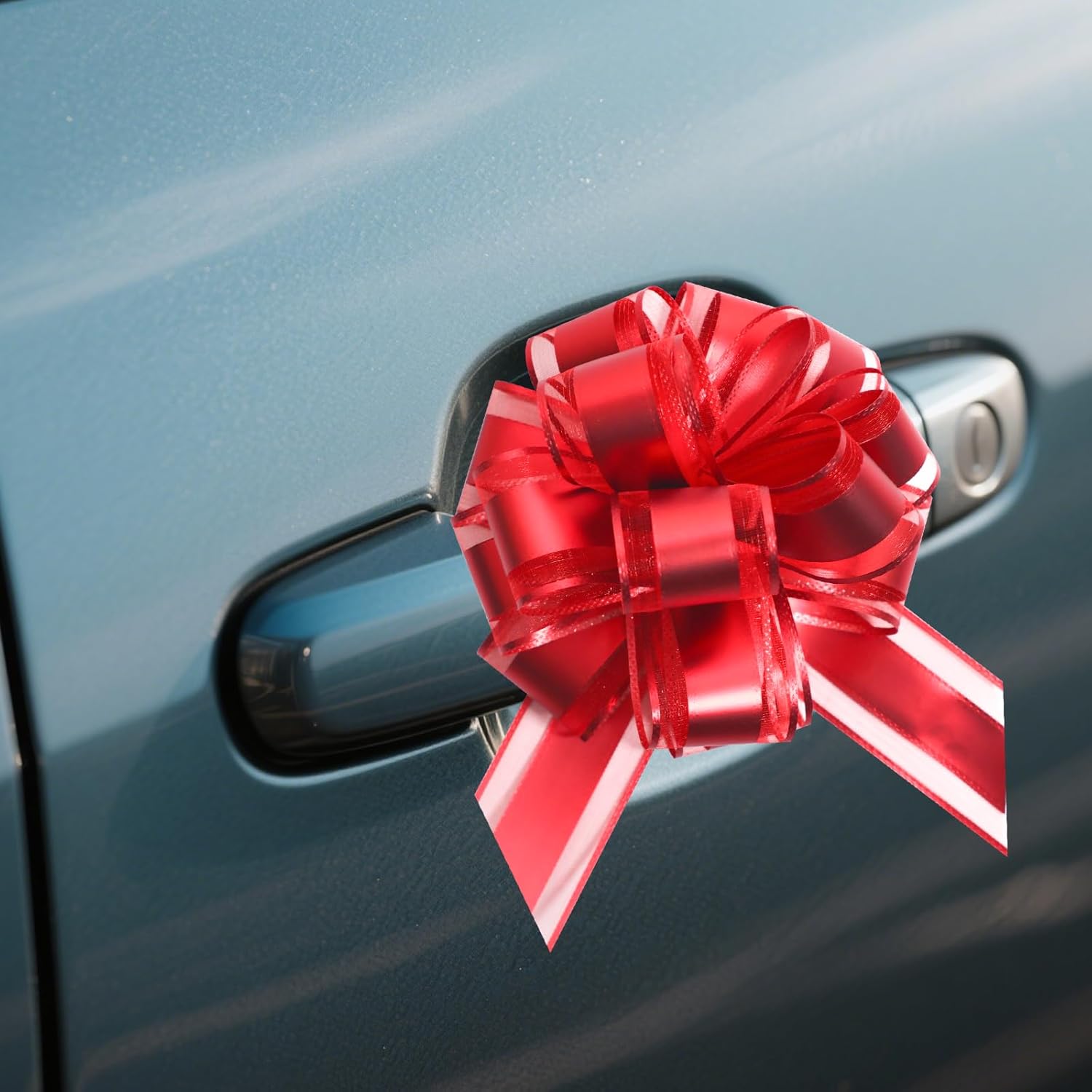 6 Pcs 6 Inch Red Pull Bows, Perfect for Gift Wrapping, Weddings, Party Decorations, Crafts Easy-to-Use Pull Bows for Gifts and Events