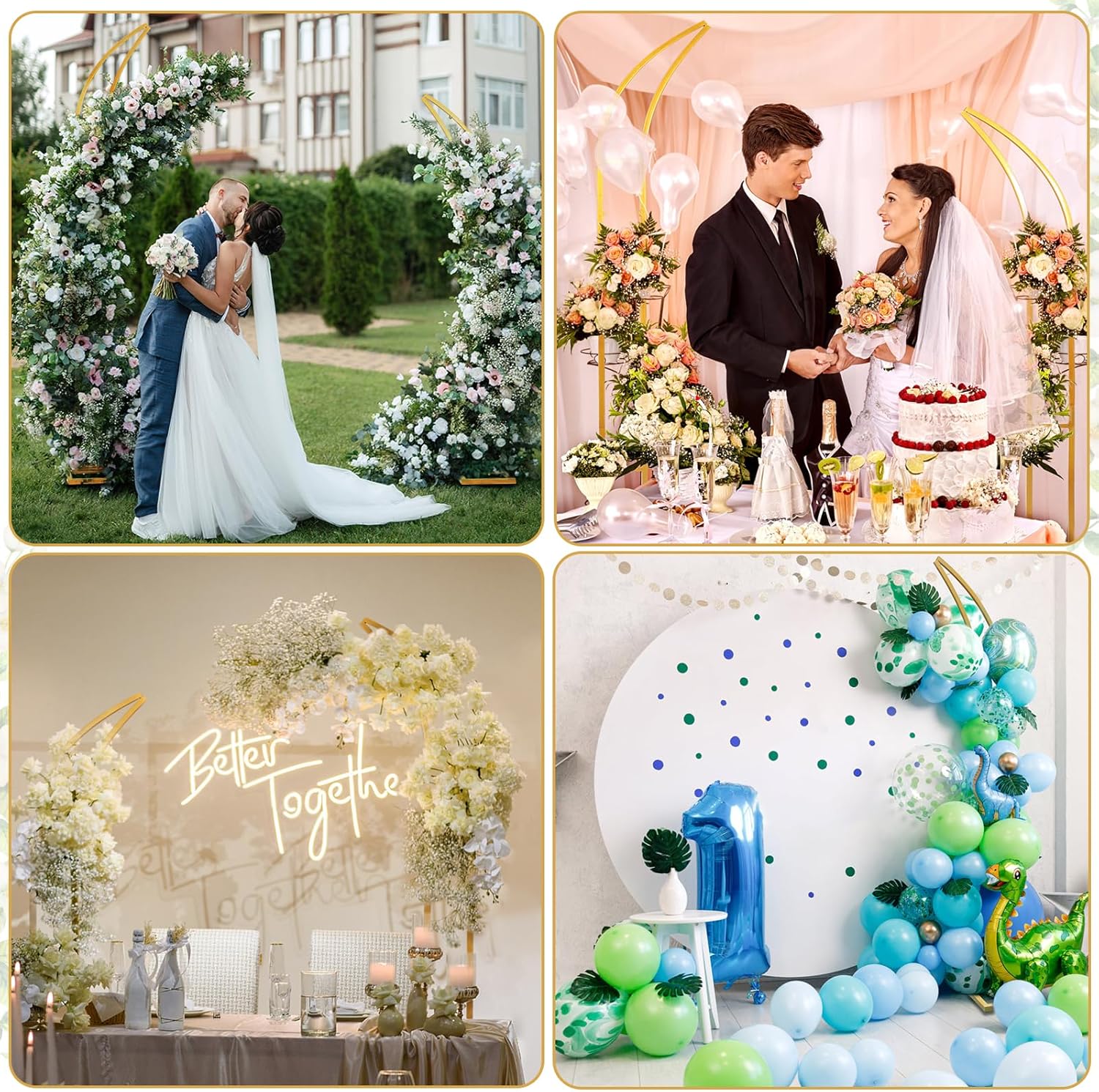 - 【Novel curved design & Secure Base】: This versatile arch features the elegant gate design and adds a vintage and romantic touch while providing a perfect frame. Our metal base adds two diagonal rods to the original T-shaped bracket, forming a triangular stable structure that is not easily blown down or shaken by the wind, providing better support for the background display.Make wedding ceremonies, receptions, anniversaries and special events a breeze for those cherished moments.