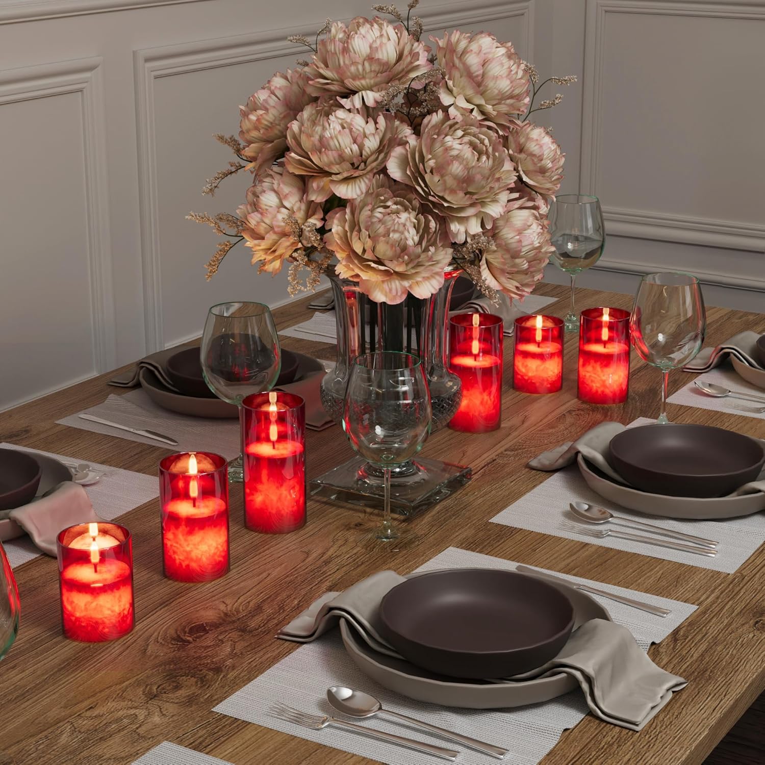 - 【Red Flameless Candles】When these realistic flameless candles flickering, the light of the 3D wick is warm white, the bright candlelight passes through the red glass, reflecting beautiful light and shadow, showing a lovely and romantic atmosphere, which is very suitable to be a gift for wife, girlfriend, and friends. - Set of 3 with the size of 3'' in diameter, 4''/5''/6'' in tall.