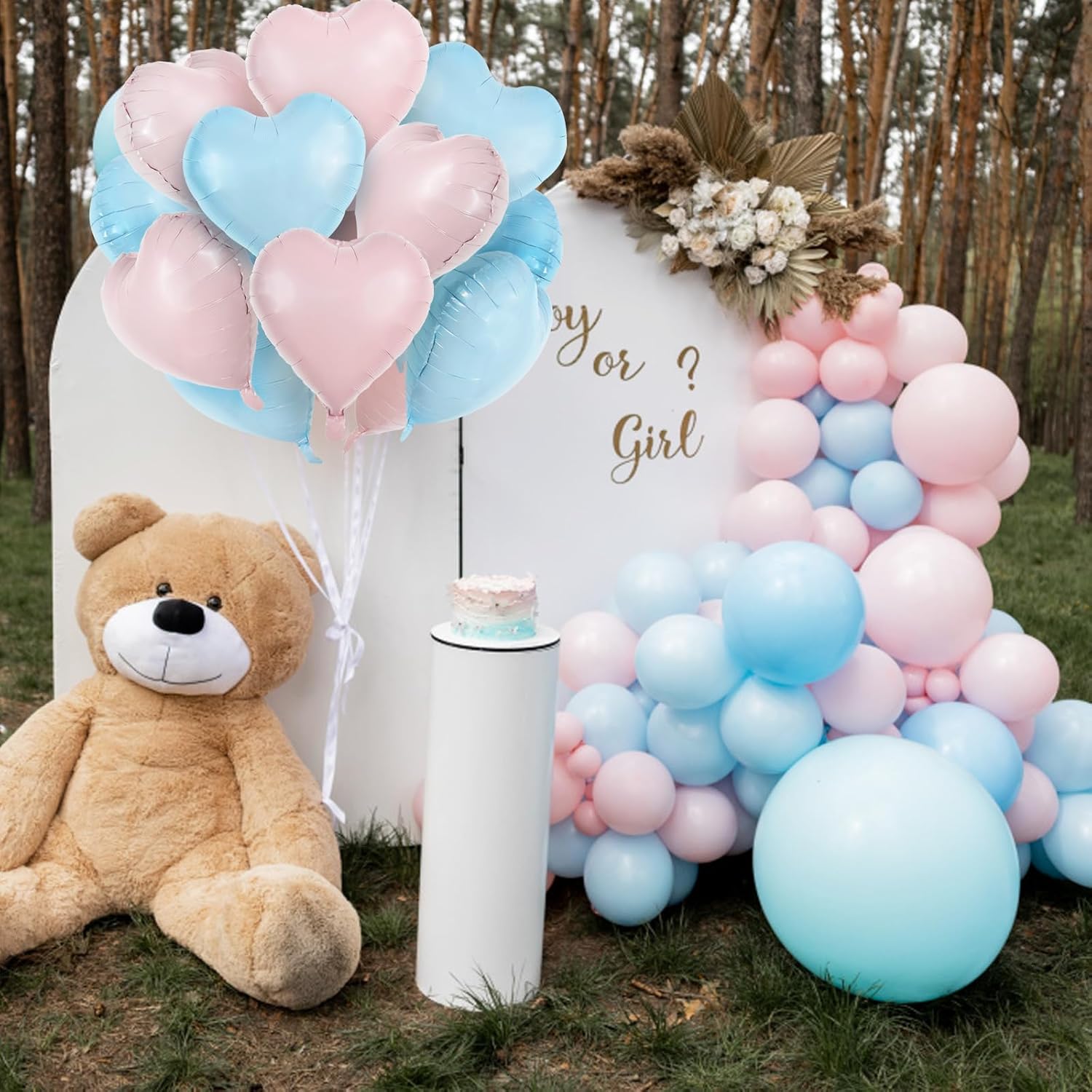 TONIFUL 15Pcs 18 Inch Heart Balloons Pastel Pink Blue Heart Shape Foil Mylar Balloons Decoration for Baby Shower Wedding Bridal Shower Anniversary Engagement Birthday Party Supplies