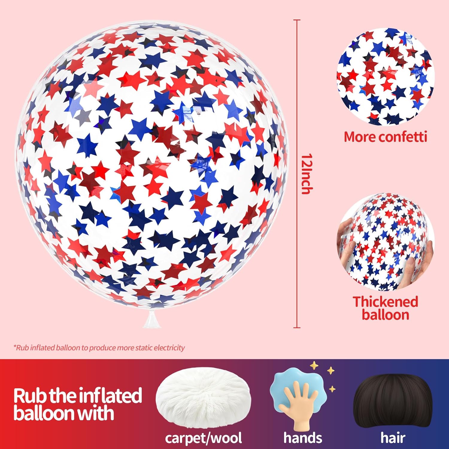 - Nice Party Accessory: 25 pcs clear balloons prefilled with blue red confetti, each balloon has undergone rigorous testing to reduce the defect rate as much as possible