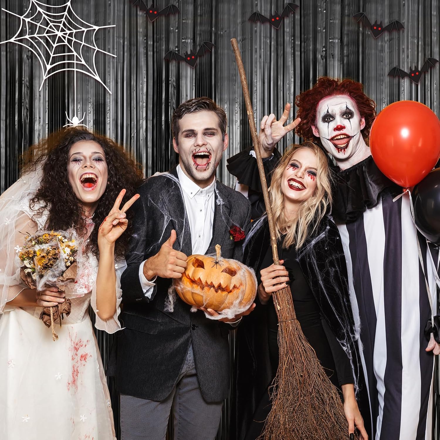 6 Pack Black Foil Fringe Curtains Streamers Party Decorations 3.3 x 8.2 ft, Black Tinsel Curtain Fringe Backdrop for Parties, Door Fringe Birthday Streamers, Photo Booth Backdrops, Party Decor
