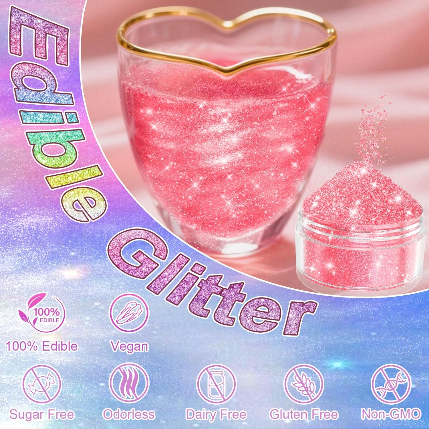 - Food Grade, Vegan Edible Glitter: Our edible glitter is made from thorough food-grade materials, ensuring it is non-GMO, no dairy, no gluten, and vegan-friendly. Enjoy the beauty of our luster dust edible without altering the original taste of your creations, making it perfect for any occasion.