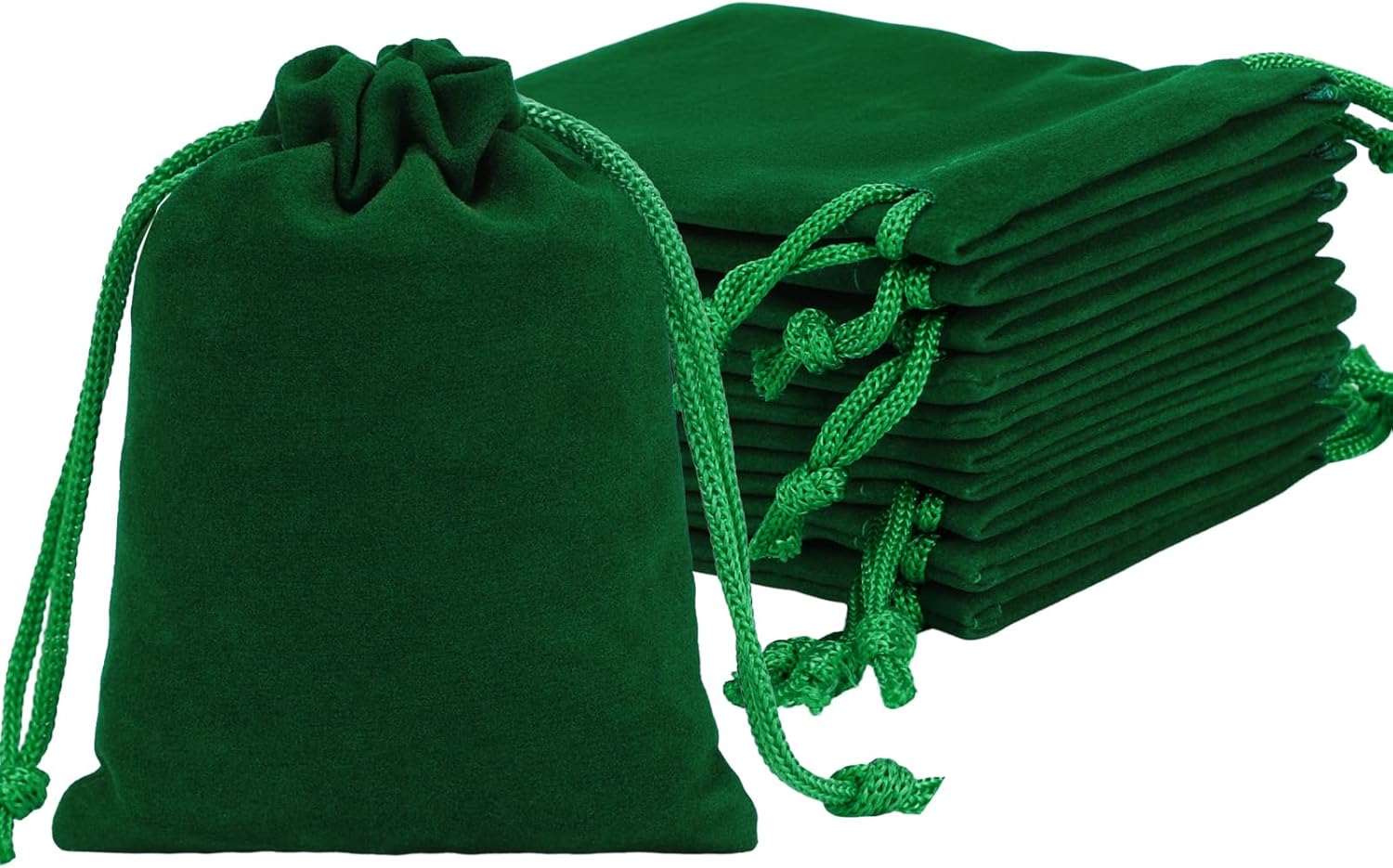 Shintop 10pcs Small velvet bags, 3x4inch Green Jewelry Pouches Drawstring Gift Packaging Cloth Dice Bags for Coins Small Business Party Favor