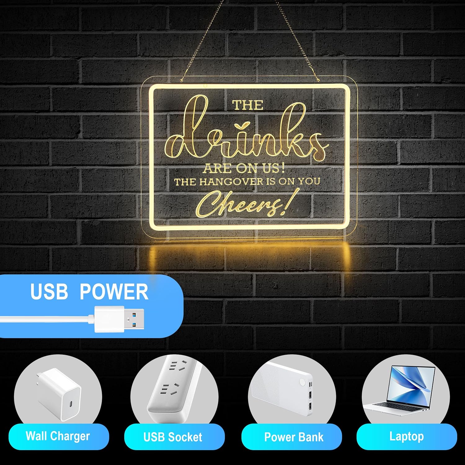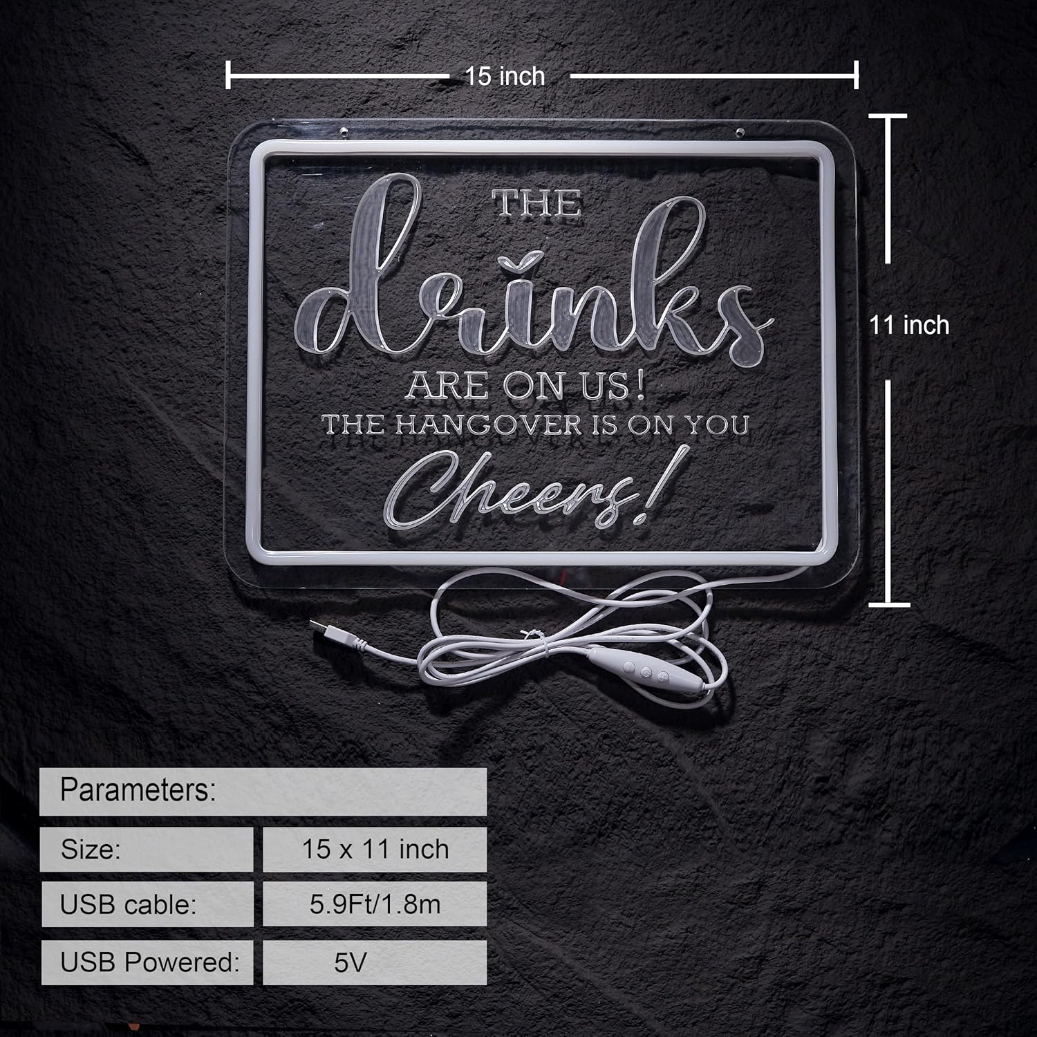 Bar Neon Sign The Drinks Are On Us LED Signs The HanGover is On You Cheers Neon Light Gifts for Wedding Party Bars Pubs Neon Signs Decorations