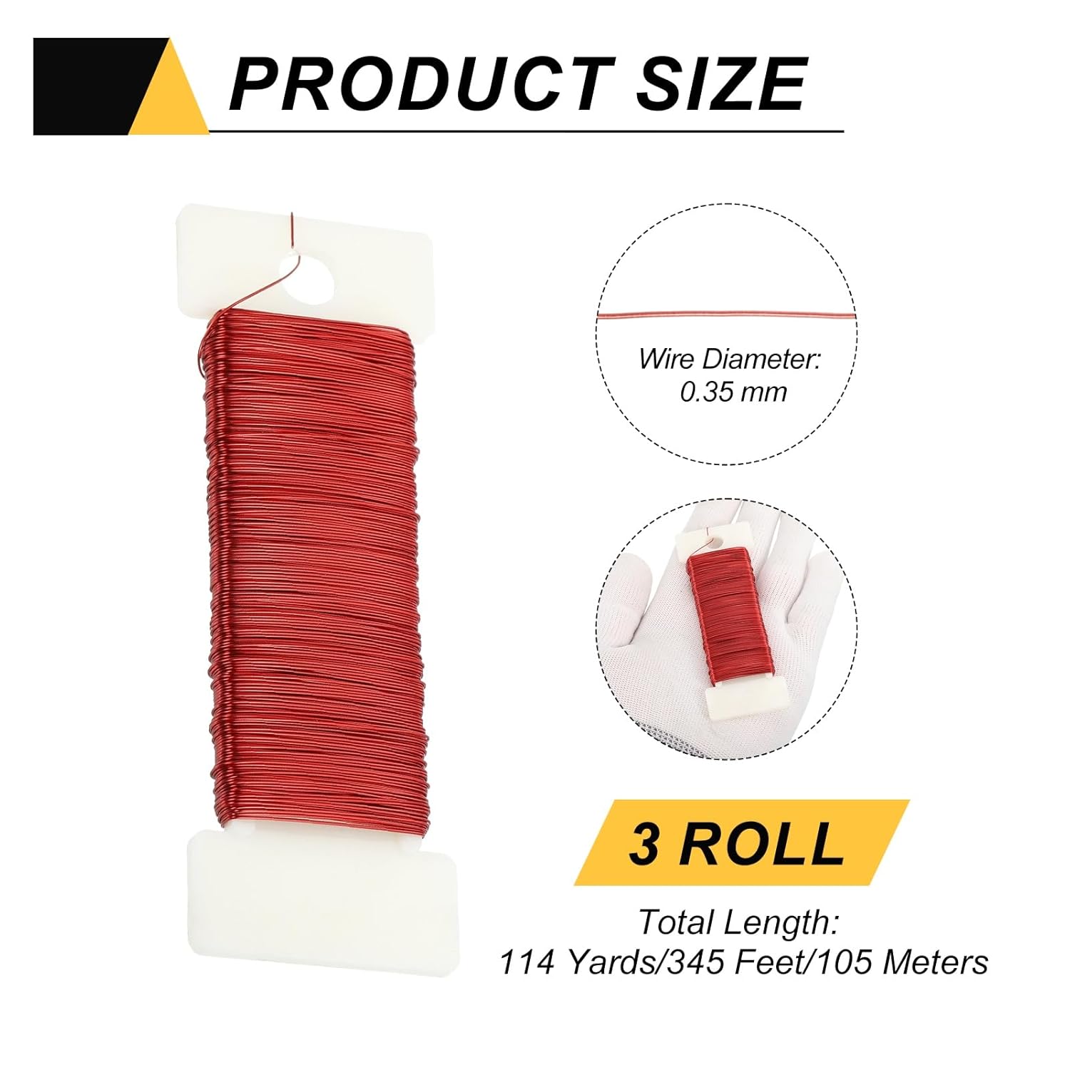 - Color: Red; Material: Aluminum; Total Length: 114 Yards/345 Feet/105 Meters; Diameter: 0.35mm/27 Gauge; In the package of: 3 Roll Metal Floral Wire (38 Yards/ Roll)