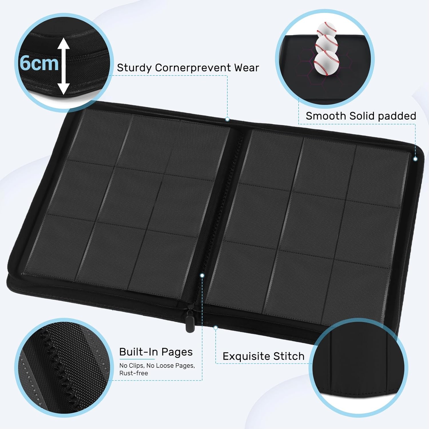 - Side Loading & Ultra-Clear Pages: Featuring archival-grade acid-free & non-PVC materials, this side-loading card binder prevents fading and card stickiness while its ultra-clear anti-scratch sleeves showcase holofoil details and securely lock cards in place—ideal for prolonged storage and collection display.