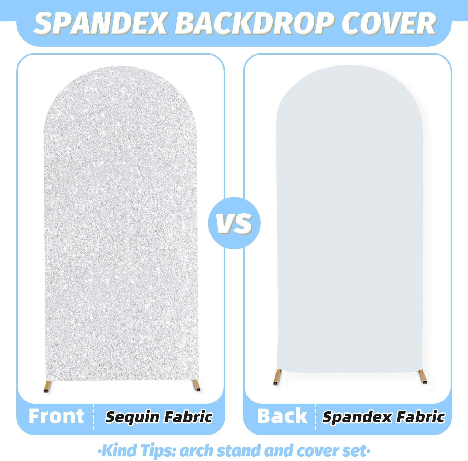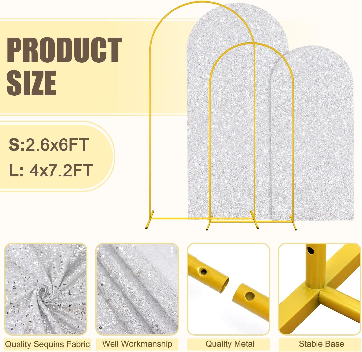 MODFUNS Metal Arch Backdrop Stand and Cover Set 6&7.2ft Silver Sequins Arch Cover Set of 2 Metal Arch Frame with Covers Balloon Arch Stands for Wedding Ceremony Banqet Party Reception