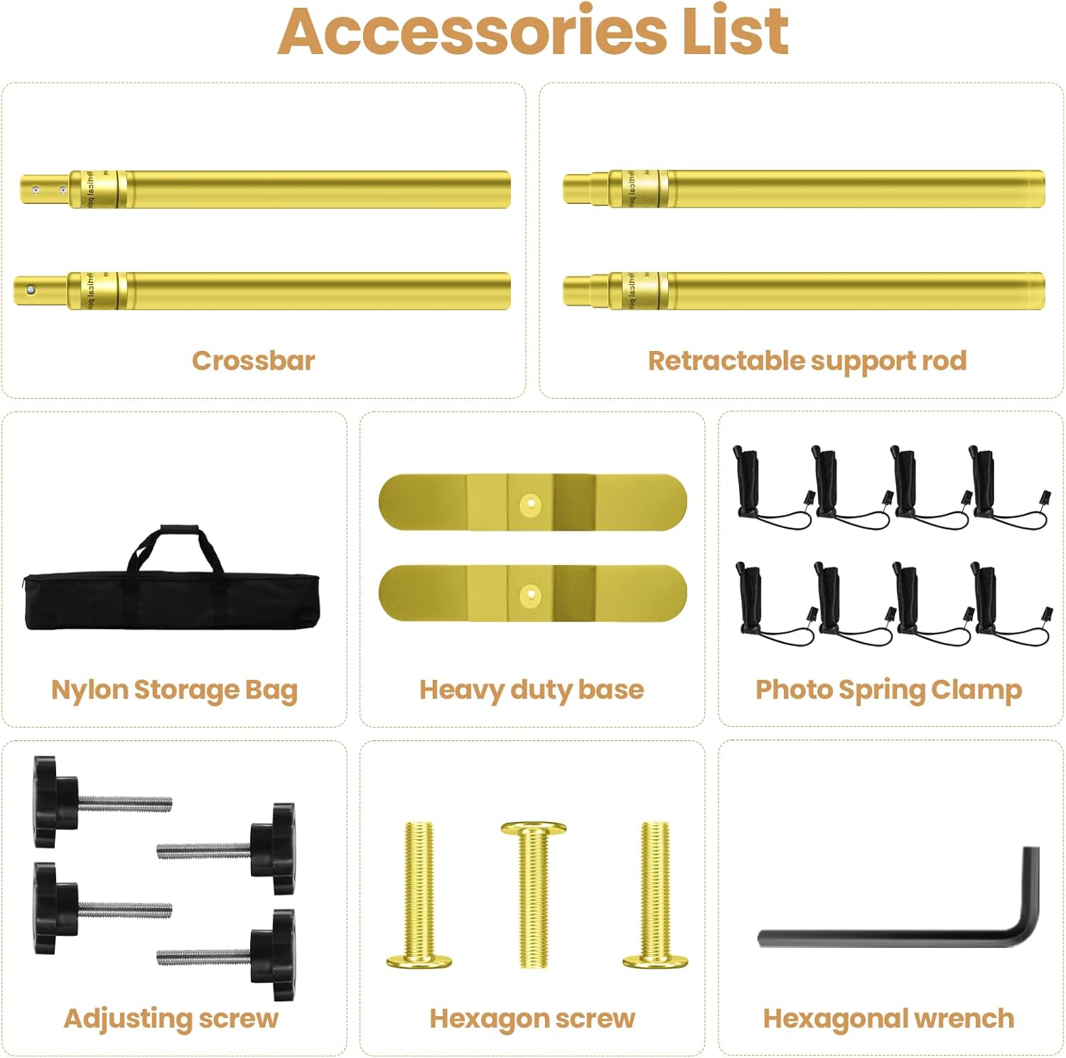 Jiang&Rong 10x10ft Heavy Duty Backdrop Stand Kit - Adjustable Step and Repeat Photo Banner Stand for Photography, Trade Shows, Photo Booths, Events(Golden)