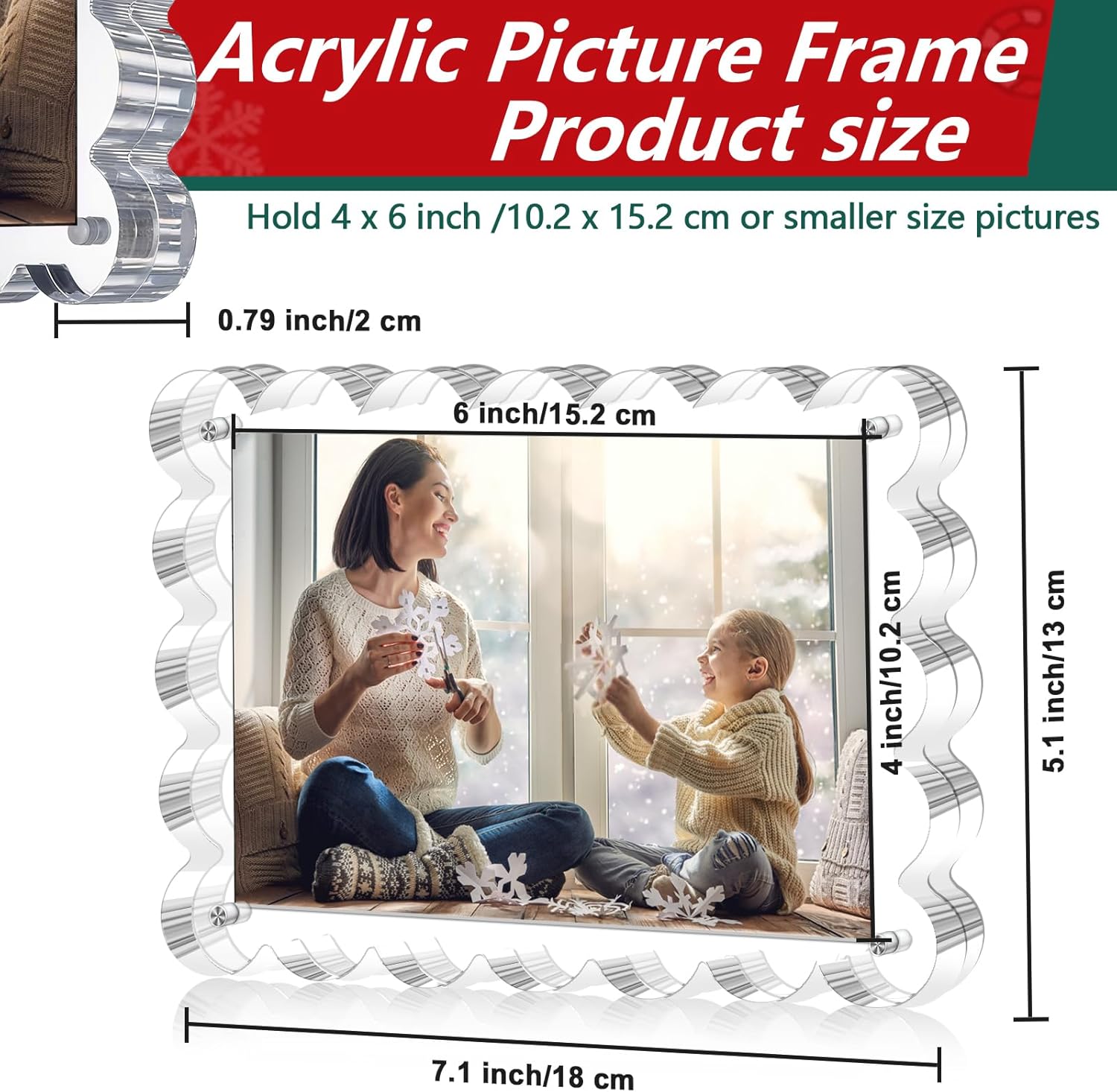 3 Pack Acrylic Picture Frame - 4x6 Magnetic Picture Frames, Double Sided Magnet Frames,10+10mm Thick Block, Clear Frameless Photo Scalloped Freestanding for Desktop Display