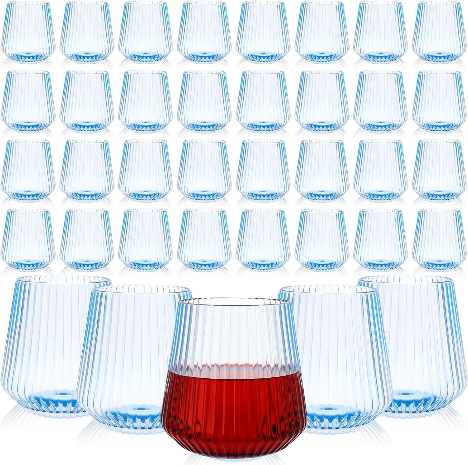 - Generous Package and Size: these ribbed stemless wine glasses come in a package of 100, sufficient to cater to your needs in an event; Each one holds about 14 oz of your beverage and stands firm at a height of about 3.54 inches/ 9 cm, a caliber of about 2.56 inches/ 6.5 cm and a maximum diameter of 3.54 inches/ 9 cm; Its versatile size and caliber make it an ideal fit for various occasions