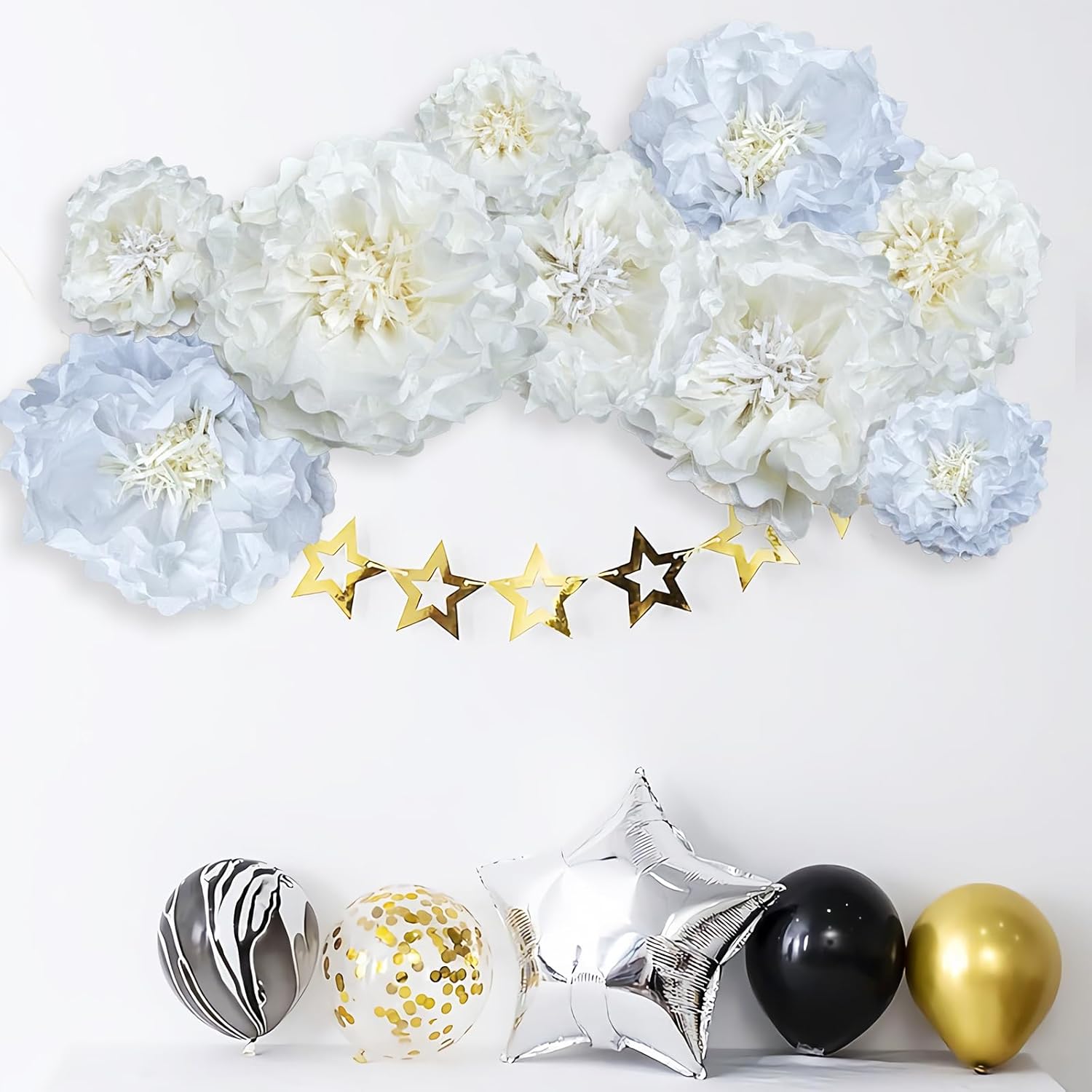 White Paper Flower Pom Poms Wall Decorations for Birthdays, Bridal, Baby Showers, Weddings, Outdoor Decor, Tea Parties, Engagement