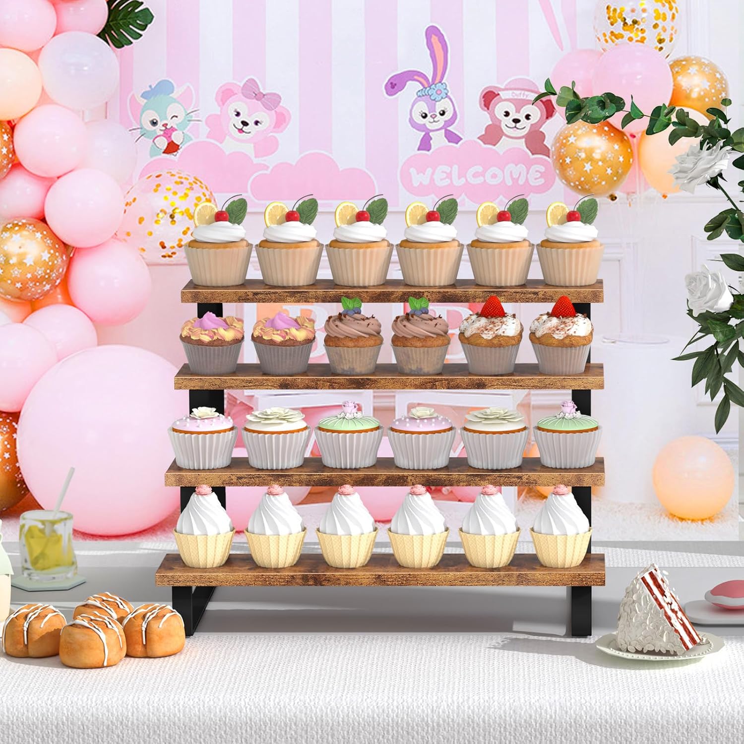 - 【Multifunctional Usage】More than just a cupcake stand, this wooden display shelf is a stylish and practical addition to your home. Use it to display cupcakes, desserts, and party treats at birthdays, weddings, or baby showers. After the party’s over, repurpose it as a chic organizer for perfumes, candles, small plants, or kitchen essentials like spices and condiments. Its versatile design fits beautifully into any room—kitchen, living room, or vanity.