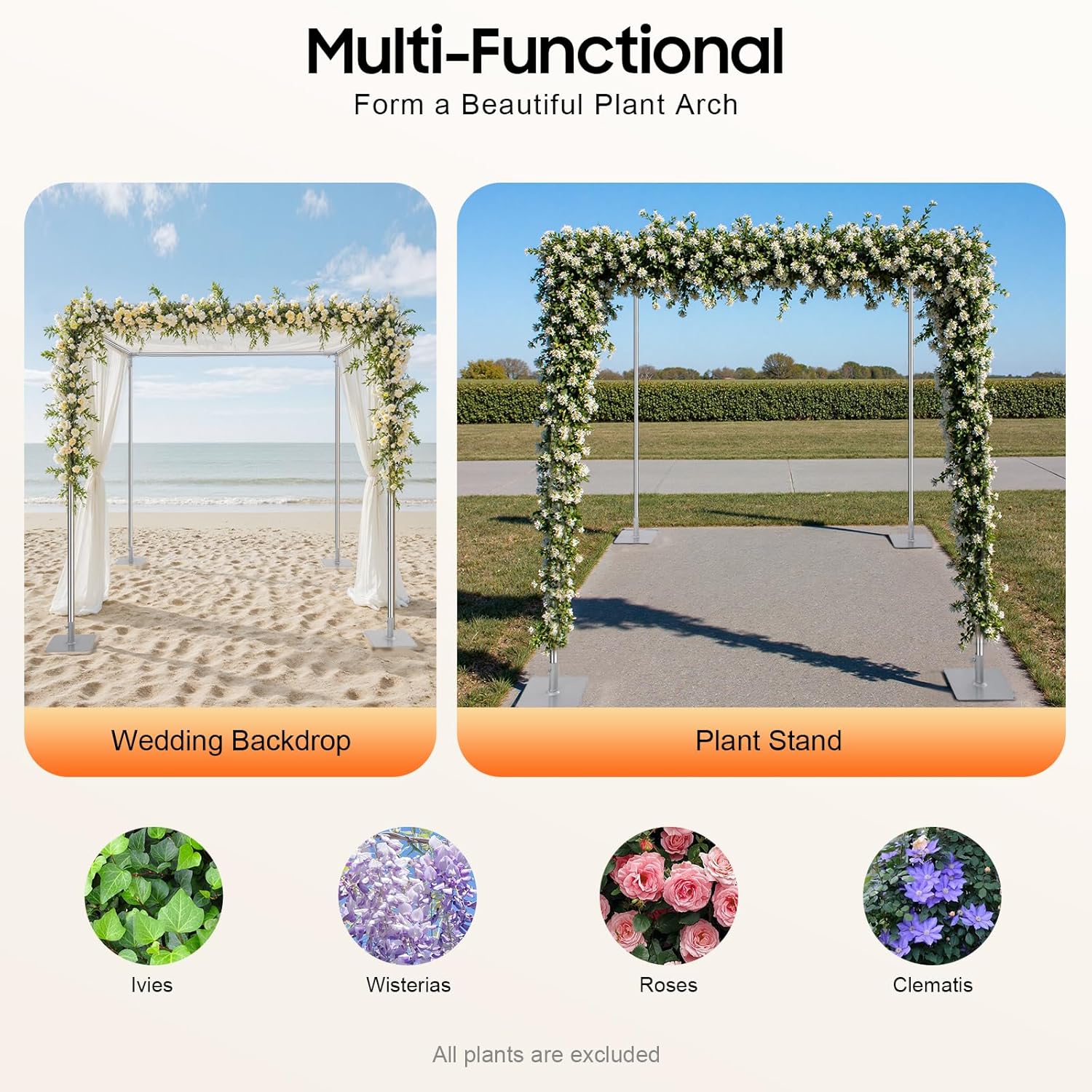 - Easy to Carry: The detachable and telescopic designs allow you to put the wedding arch stan in your trunk without taking up too much space, making it an ideal photographing tool or decorative support for outdoor use.