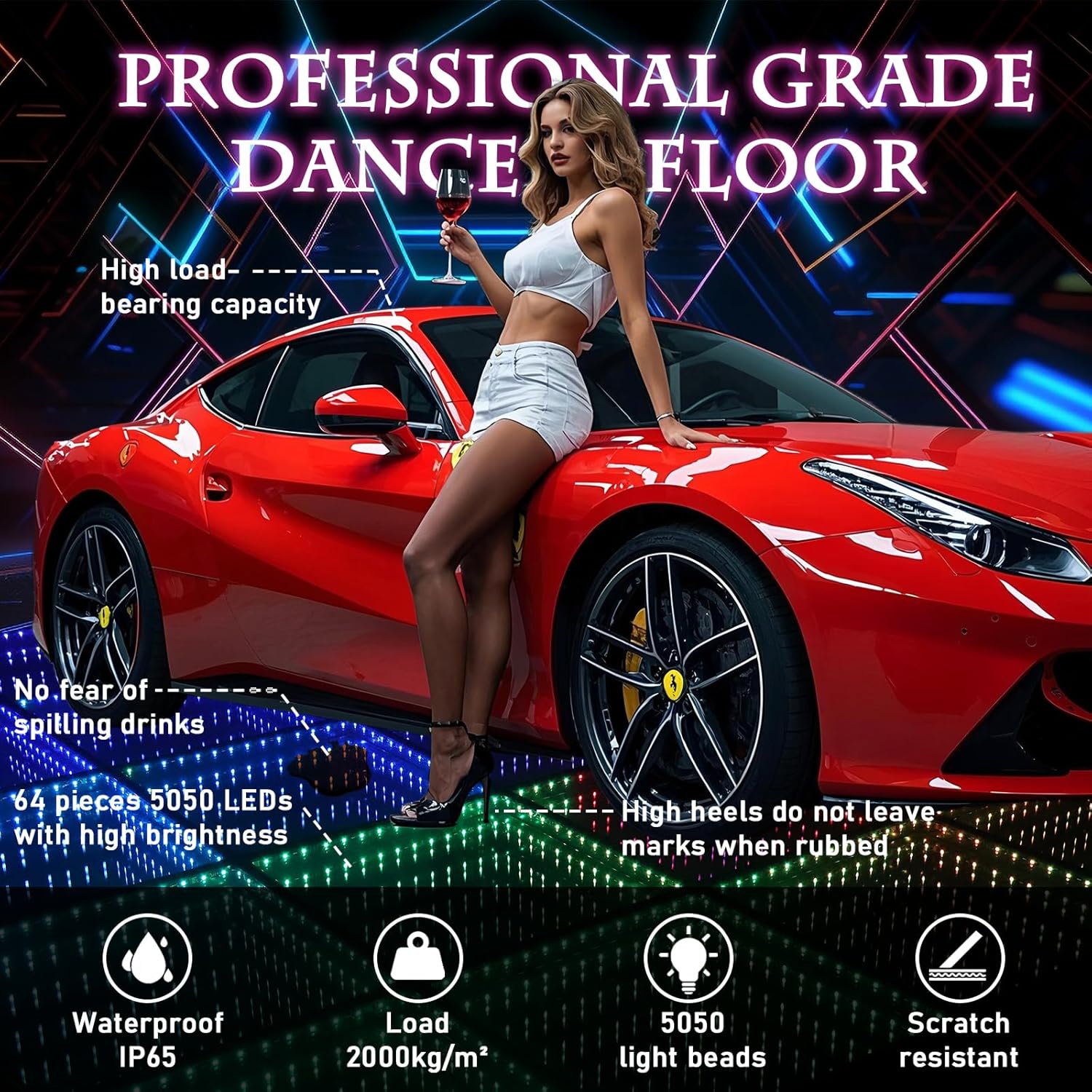 - ➤【Commercial-Grade Durability & Safety】Built for heavy-duty use with 10mm tempered glass (scratch-resistant, waterproof IP65) and anti-slip surface, supporting 500kg/㎡ load capacity. The 50,000-hour LED lifespan ensures long-term reliability for clubs, stages, and outdoor events.