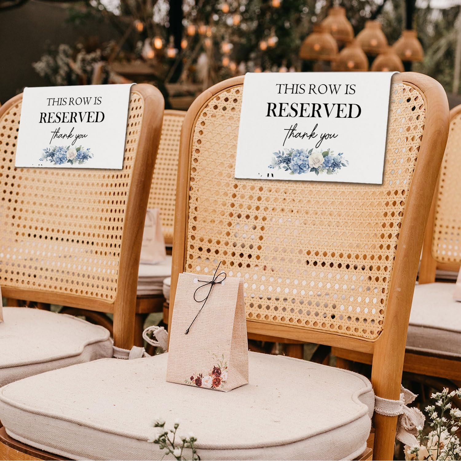Reserved Seating Chair Signs, This Row Is Reserved Pew Cloths Seating Placeholder for Church Pews, Wedding Decorations for Reception Parties Celebrations Event Meetings (Blue Floral, 4 PCS)