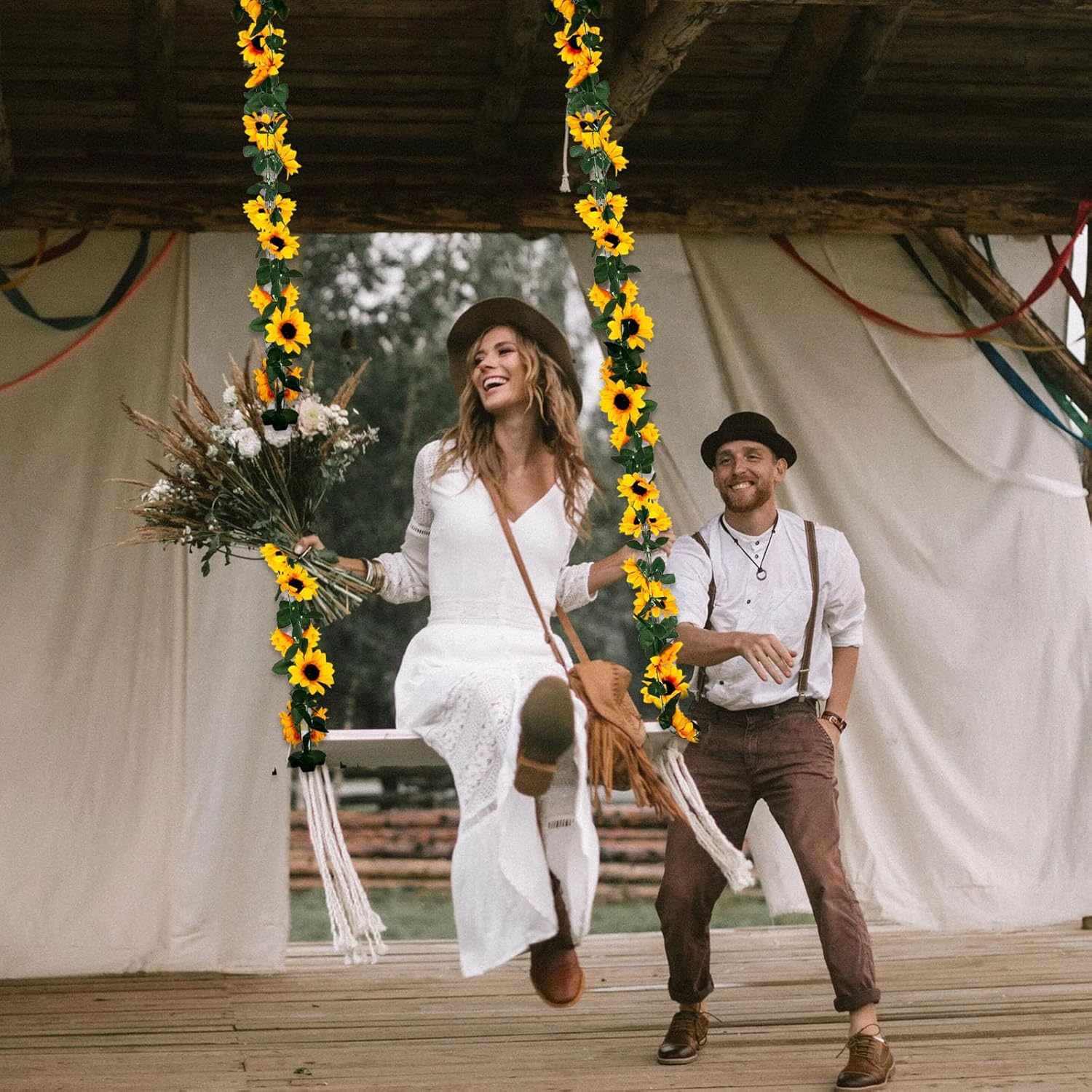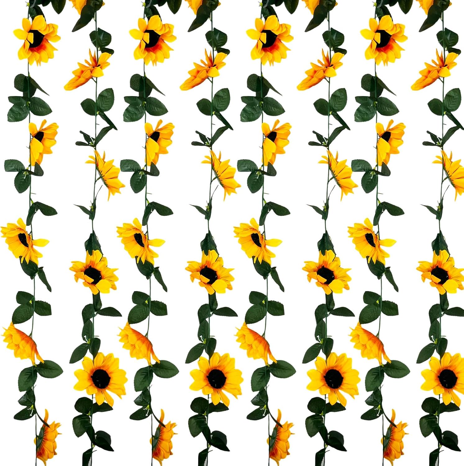 - 【Romantic Decorate】These hanging sunflower garland are lightweight and bendable, and can create a romantic and fairytale atmosphere for your life. Suitable for many scenes such as wedding arch, birthday party, anniversary, Valentine's Day, Halloween, Christmas. It can be used to decorate dinner tables, gardens, fencing, sheds, swing frames, rattan chairs, air-conditioning pipes, exposed wires, stairs, shops, restaurants, offices, etc.