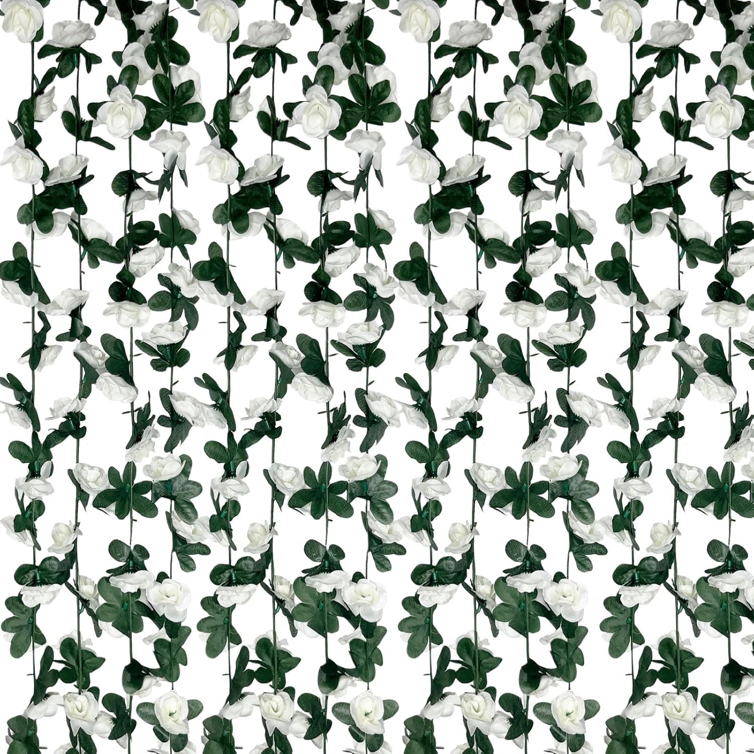 8Pcs 63Ft White Rose Garland, Fake Rose Hanging Flowers, Artificial Flower Vine, Hanging Floral Vine Garland for Wedding, Birthday Party, Wall Arch, Halloween, Christmas Garden Backdrop Decor