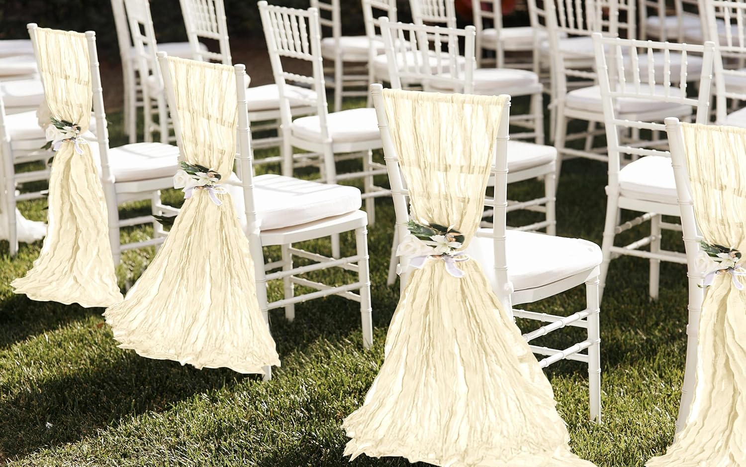 - 【Delicate Craftsmanship】Ivory cheesecloth chair sashes adopt unique pleated workmanship, and the overall appearance is simple and elegant, creating an elegant and romantic atmosphere easily. The edges are carefully stitched to keep a perfect flowing condition, will not get broken or loose easily, can serve you for a long time