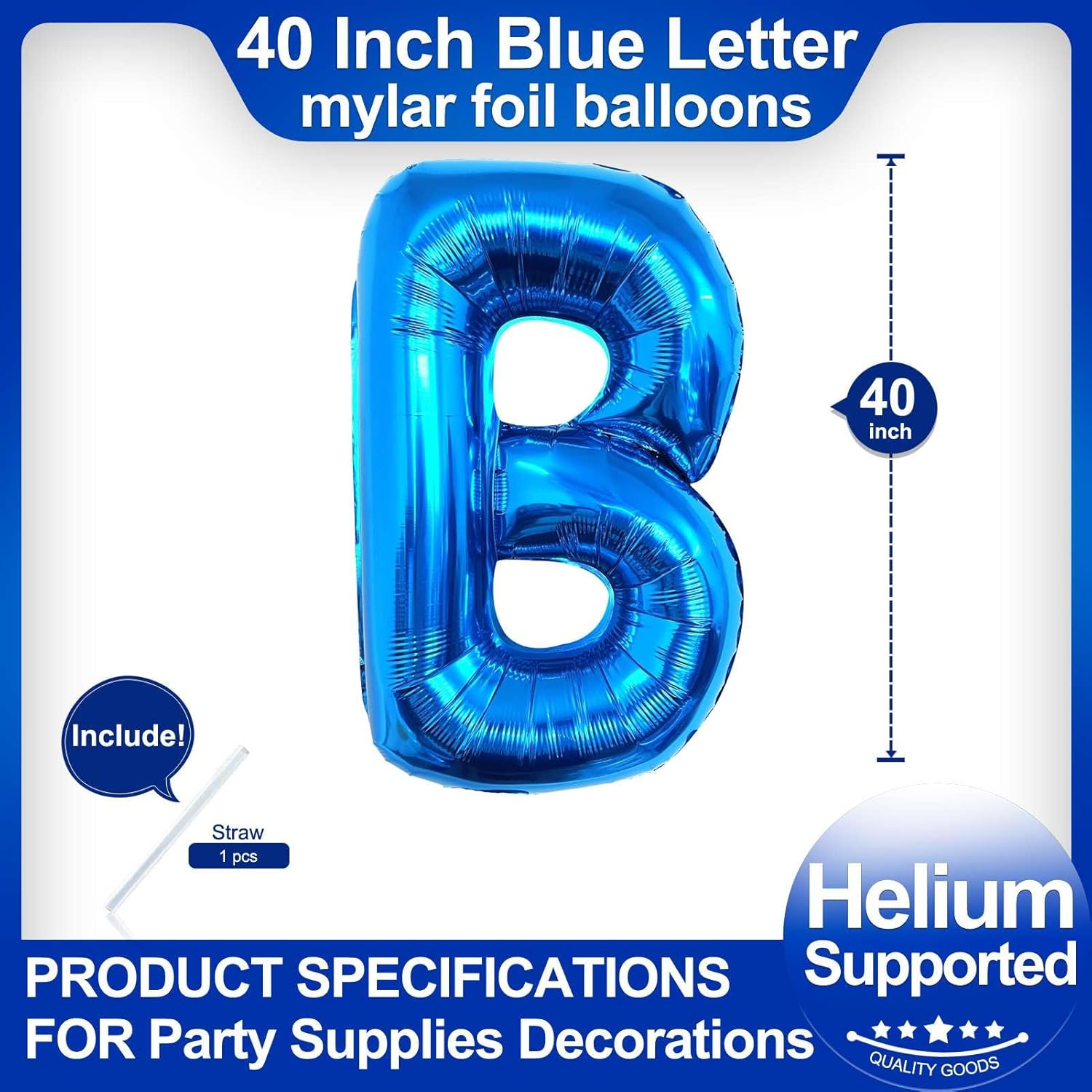 - Package included:One Blue Letter B Balloon*1,straw*1,40 inch Blue letter balloon