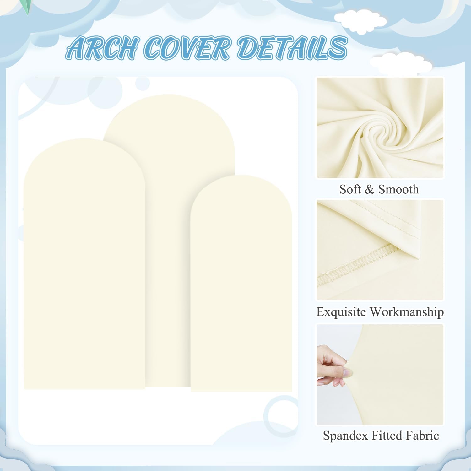FOTSHARER Wedding Arch Backdrop Stand and Cover Set of 3 Metal Balloon Arch Stand with Ivory Arch Cover 6FT, 5FT, 4FT Arch Backdrop Stand for Party Birthday Anniversary Arched Background Decorations