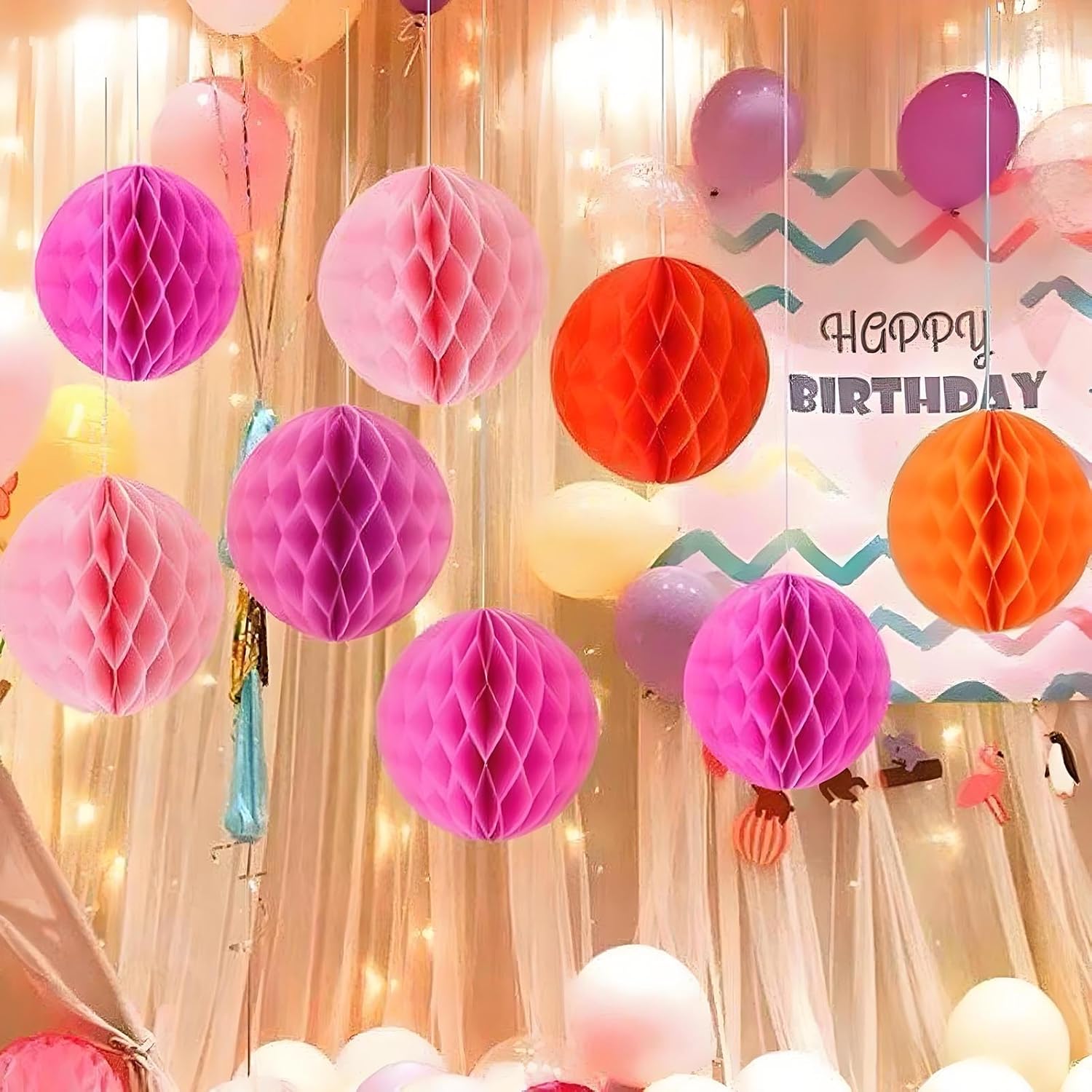- 【Tri-Color Bloom Design】Vibrant Rose red light pink orange honeycomb balls create a soft, feminine gradient for weddings, baby showers, or birthday parties. Perfect for photo backdrops, garland arches, or table centerpieces.
