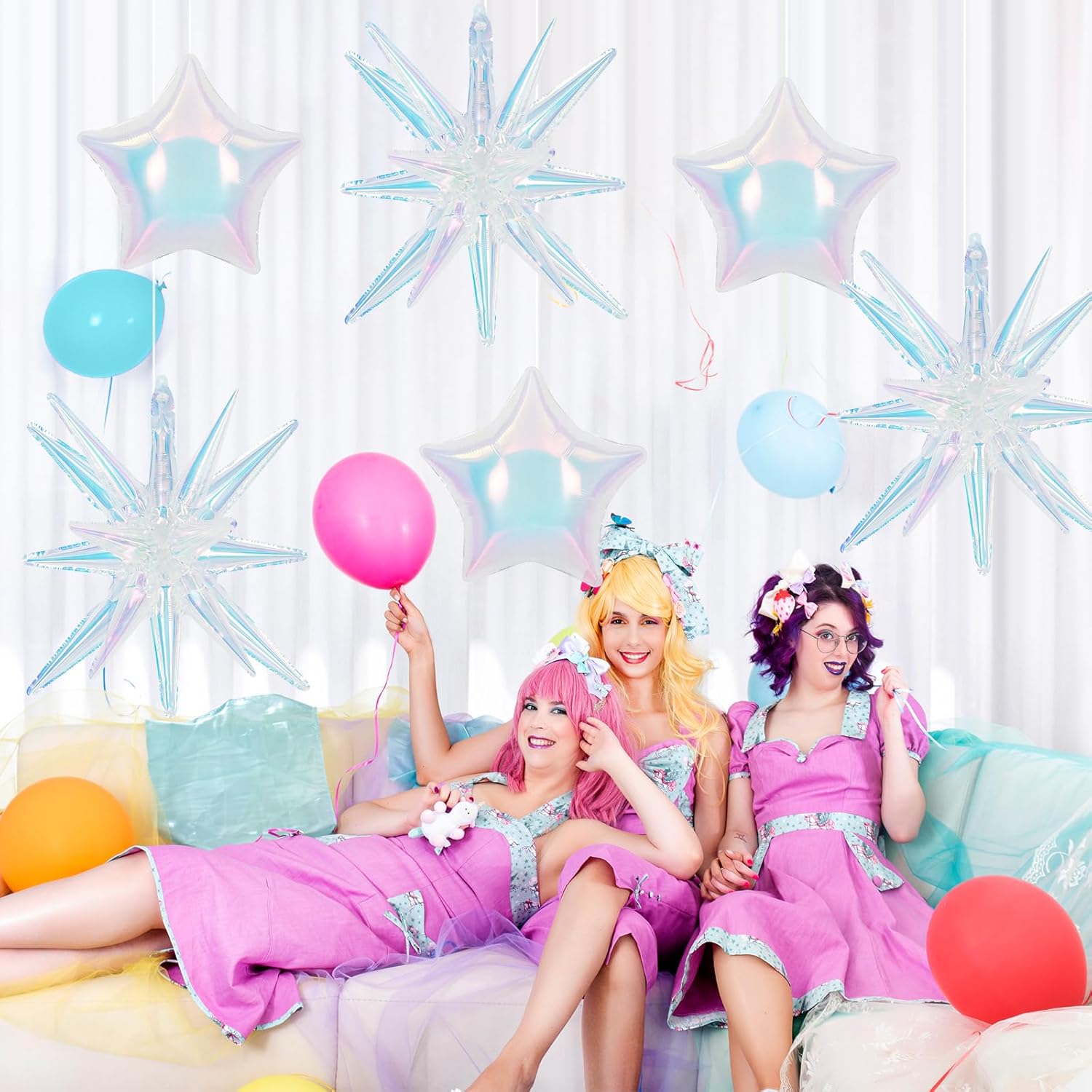 6Pcs Iridescent Foil Balloons, 22" 18" Star Iridescent Balloons Large Holographic Spike Cone Clear Foil Balloon for Birthday Baby Shower Mermaid Rainbow Wedding Party Decorations