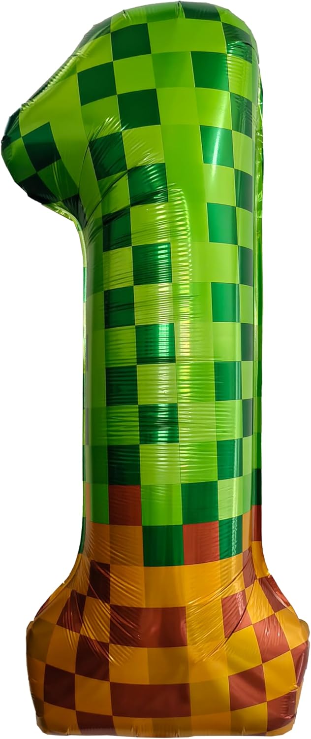 Pixel & TNT Theme 40in Giant Number Balloons - Foil Mylar Birthday Party Decorations for Kids Adults Cumpleaños, Block Style Pixel Art Shape Balloon Decor Supplies (Pixel, Number 1)