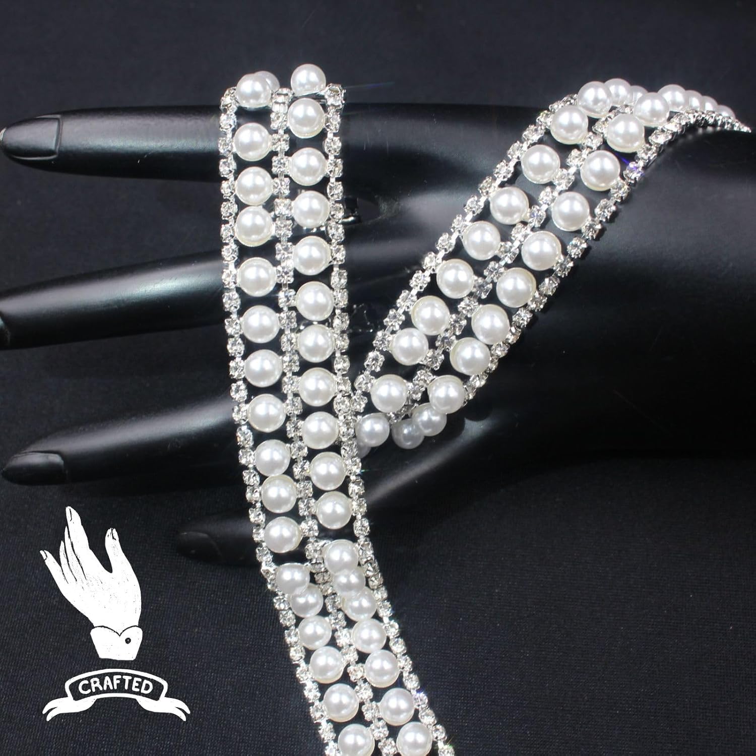 - Glam Sparkle for Any Style: Mixing classic pearls with dazzling rhinestones, this trim blends elegance and shine for a look that suits both casual and formal projects. Perfect for fashion lovers add a touch of vintage-inspired glamour or modern bling to any creation
