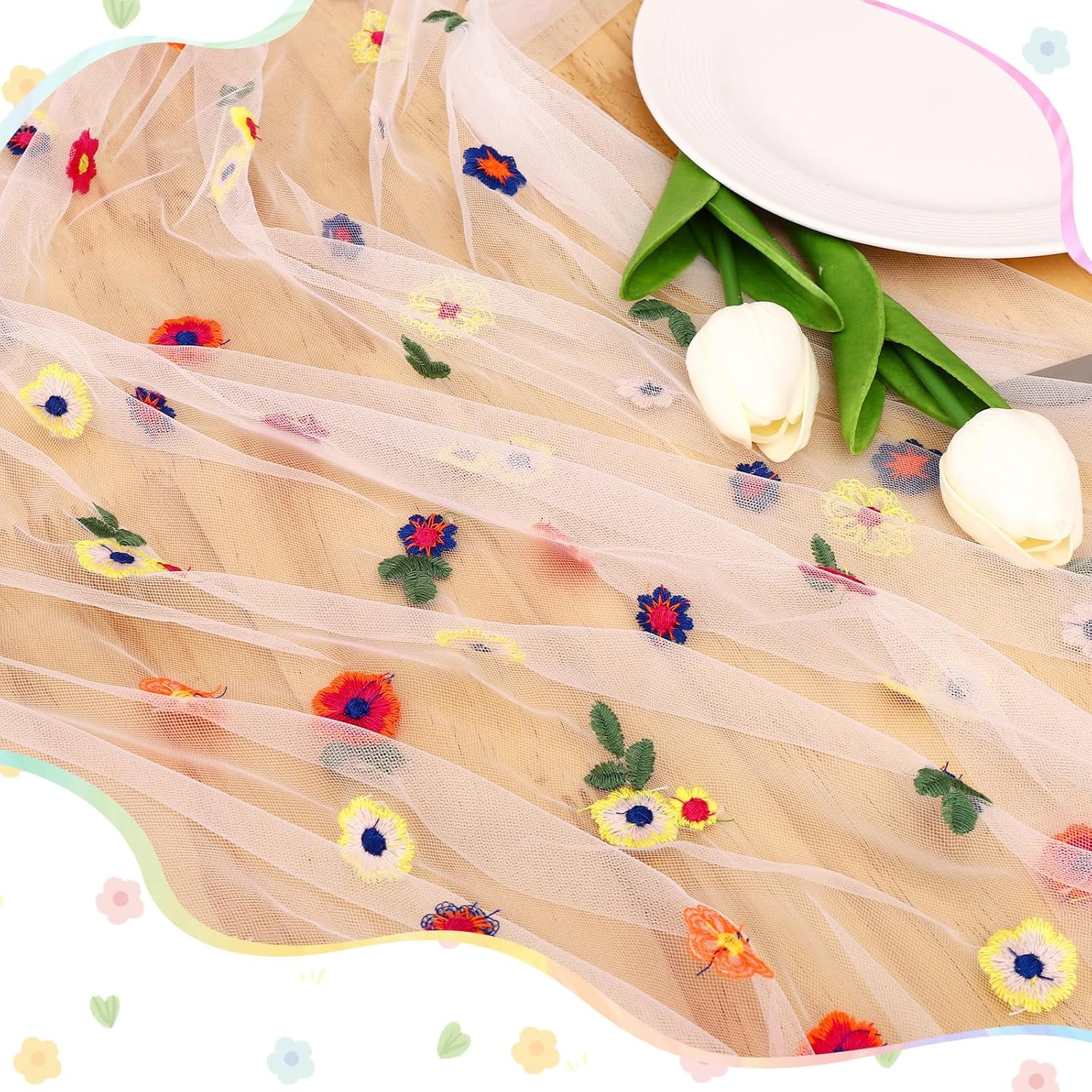 - High-Quality Tulle Fabric: Made from white chiffon fabric, this lightweight embroidered table runner is not only beautiful but also adds a touch of elegance to your dining experience. Each sheer floral table runner measures approximately 29 x 120 inches.