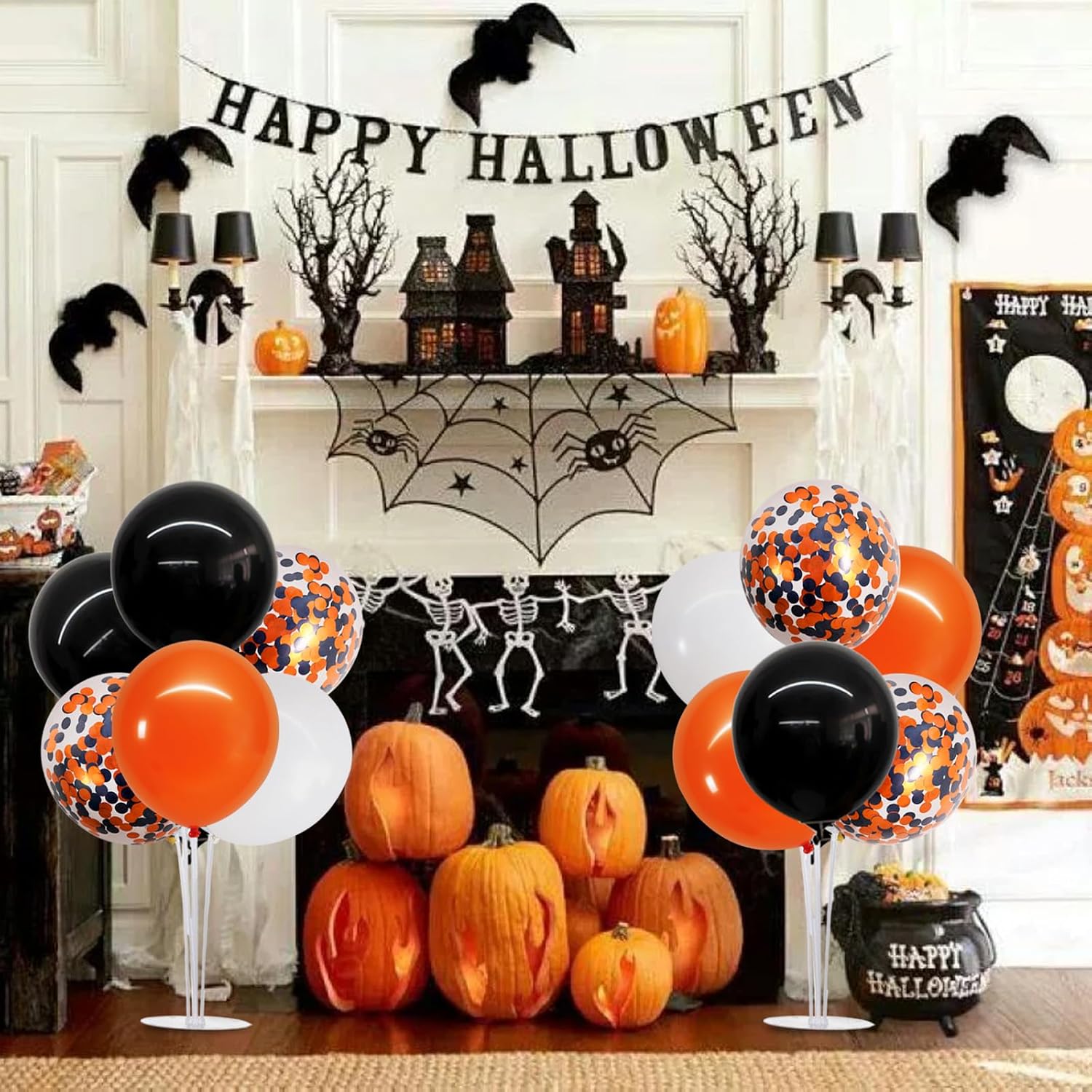 TONIFUL 4 Set Halloween Balloons Black Orange Confetti White Balloon Stand Centerpiece Table Decorations for Halloween,Celebration Party Bar,Anniversary,Graduation Decoration 2025