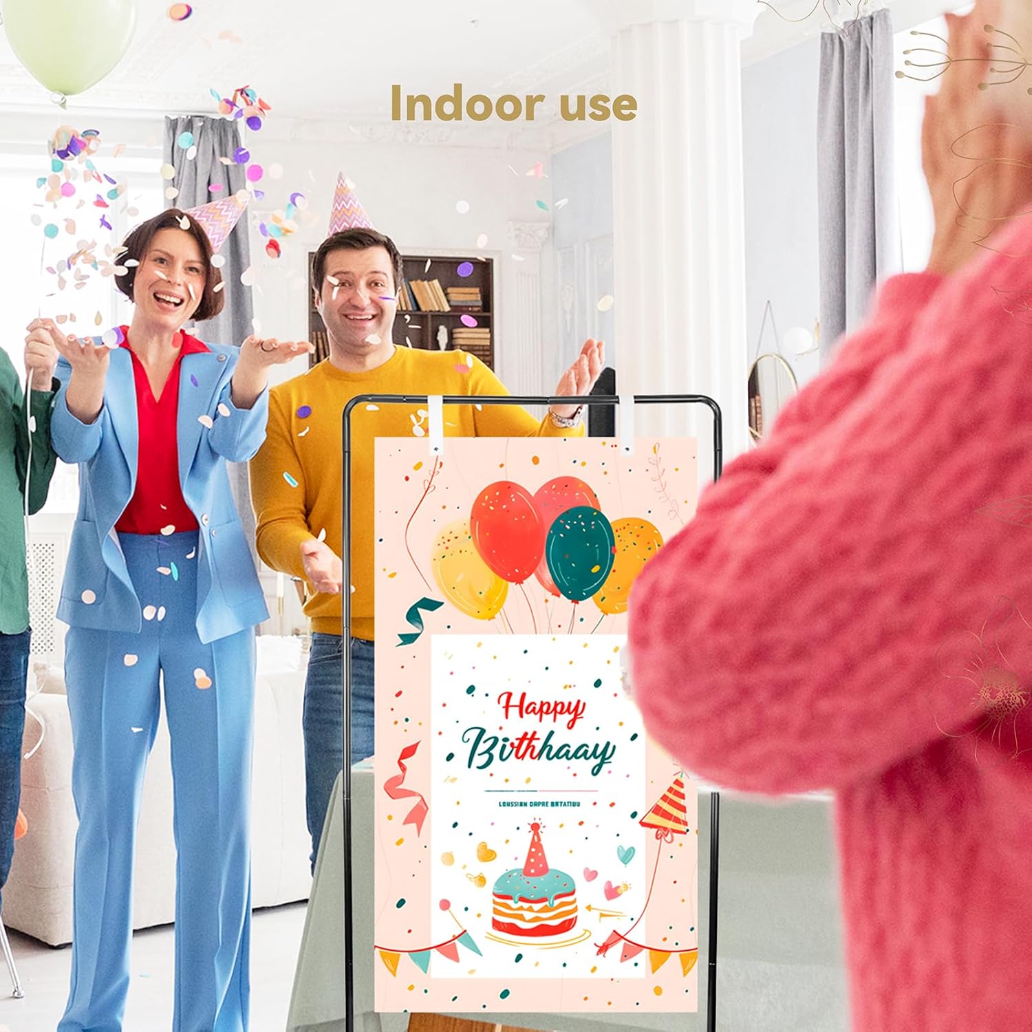 - Easy to Assemble/Disassemble: Follow the included installation construction to quickly assemble the large easel stand for display, allowing you to enjoy the process of your event. This versatile stand holder is ideal for baby showers, parties, bridal showers, weddings, housewarming, celebrations, storefront, exhibitions, conferences, etc(Physical sign not included)