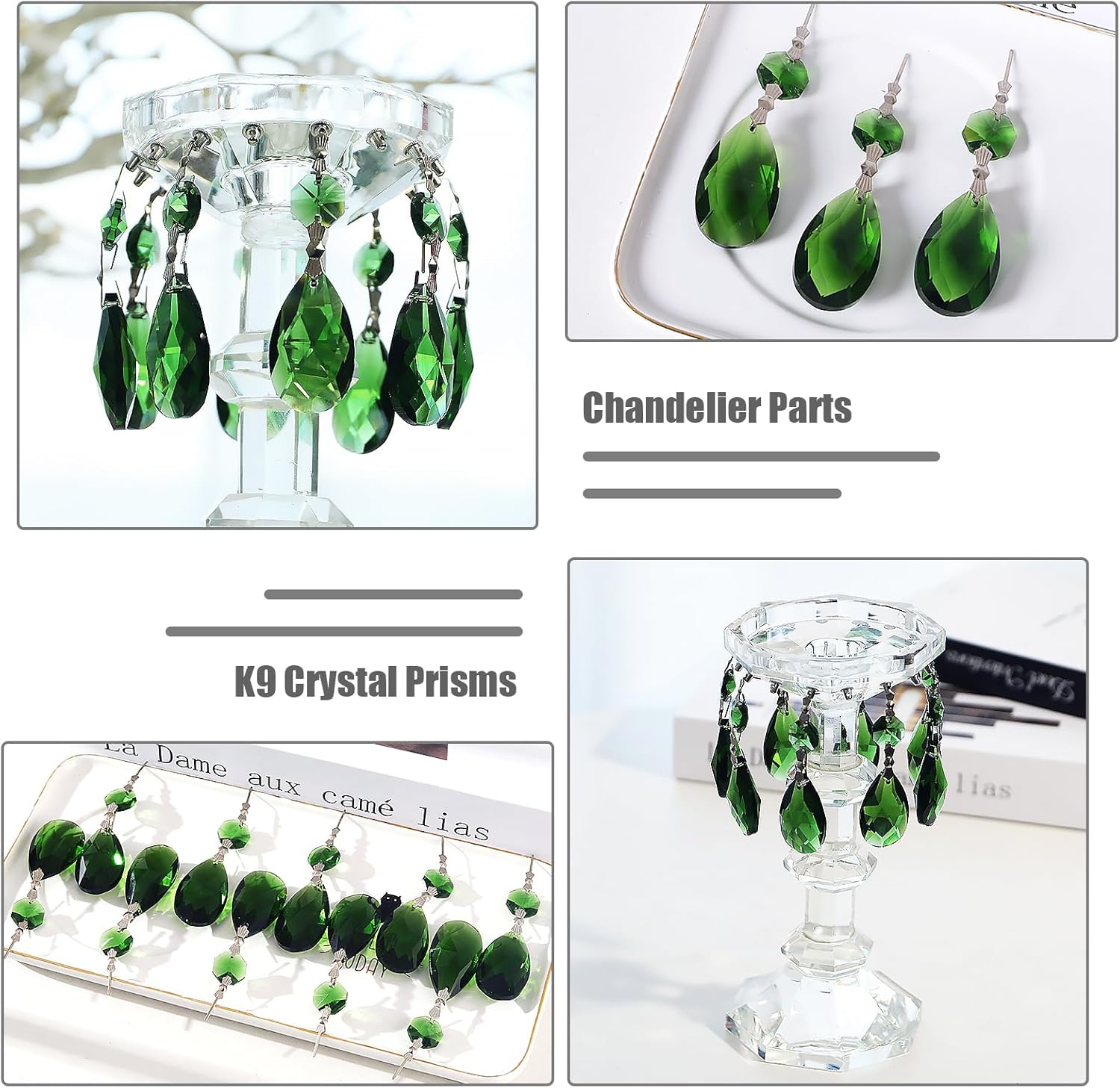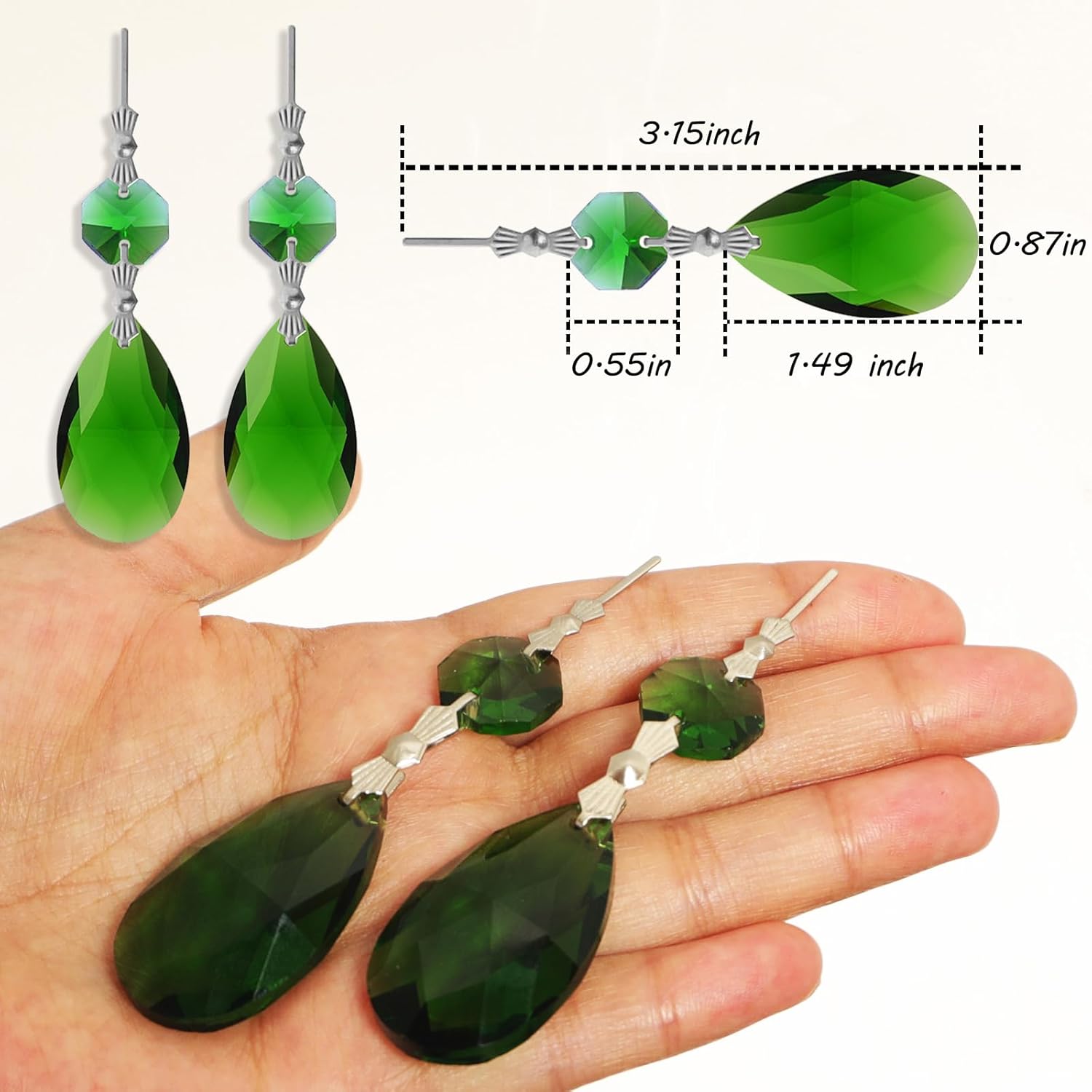 10pcs Crystal Prisms Chandelier Green Ornament Pendants Rainbow Maker 38mm Drop Prism Hanging Prisms for Wedding Party Chrismtmas Decoration DIY Jewelry