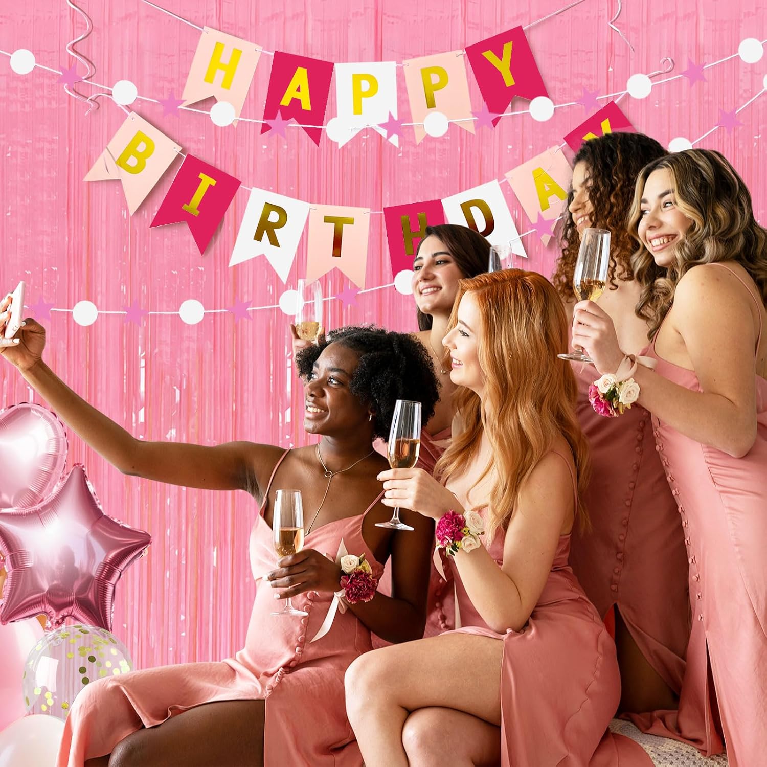 - Pink Fringe backdrop Set (2-Pack): Each dazzling curtain measures 3.28ft x 6.56ft – perfect for doors, walls, or photo booths! These extra-long foil streamers instantly transform any space into a party-ready celebration zone. Mix, layer, and customize your decor for the best results.