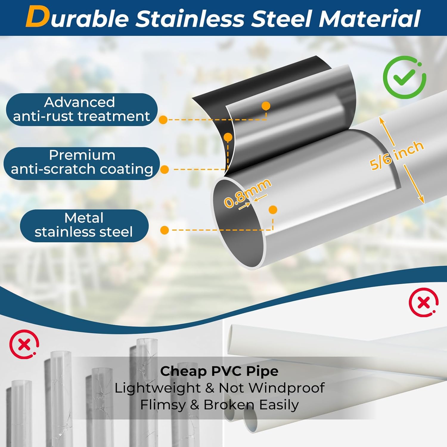 - ✅ Heavy-Duty Stainless Steel Metal Poles: The support poles for the balloon column stand are made of high-strength metal material with a diameter of 20 millimeters, offering greater stability compared to plastic materials. The splicing design provides 200% greater durability than one-piece telescoping designs, making them less prone to bending or breaking during use.