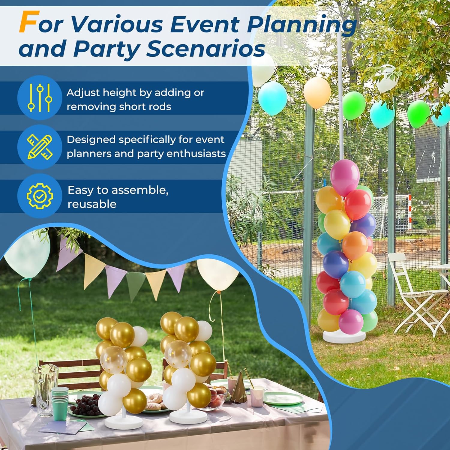 - ✅ Event Decorations: The balloon towers set of 2 is the perfect decoration for birthday parties, weddings, anniversaries, events, mall openings, graduations, baby showers for boys/girls, gender reveal parties, Halloween, and Christmas decorations.