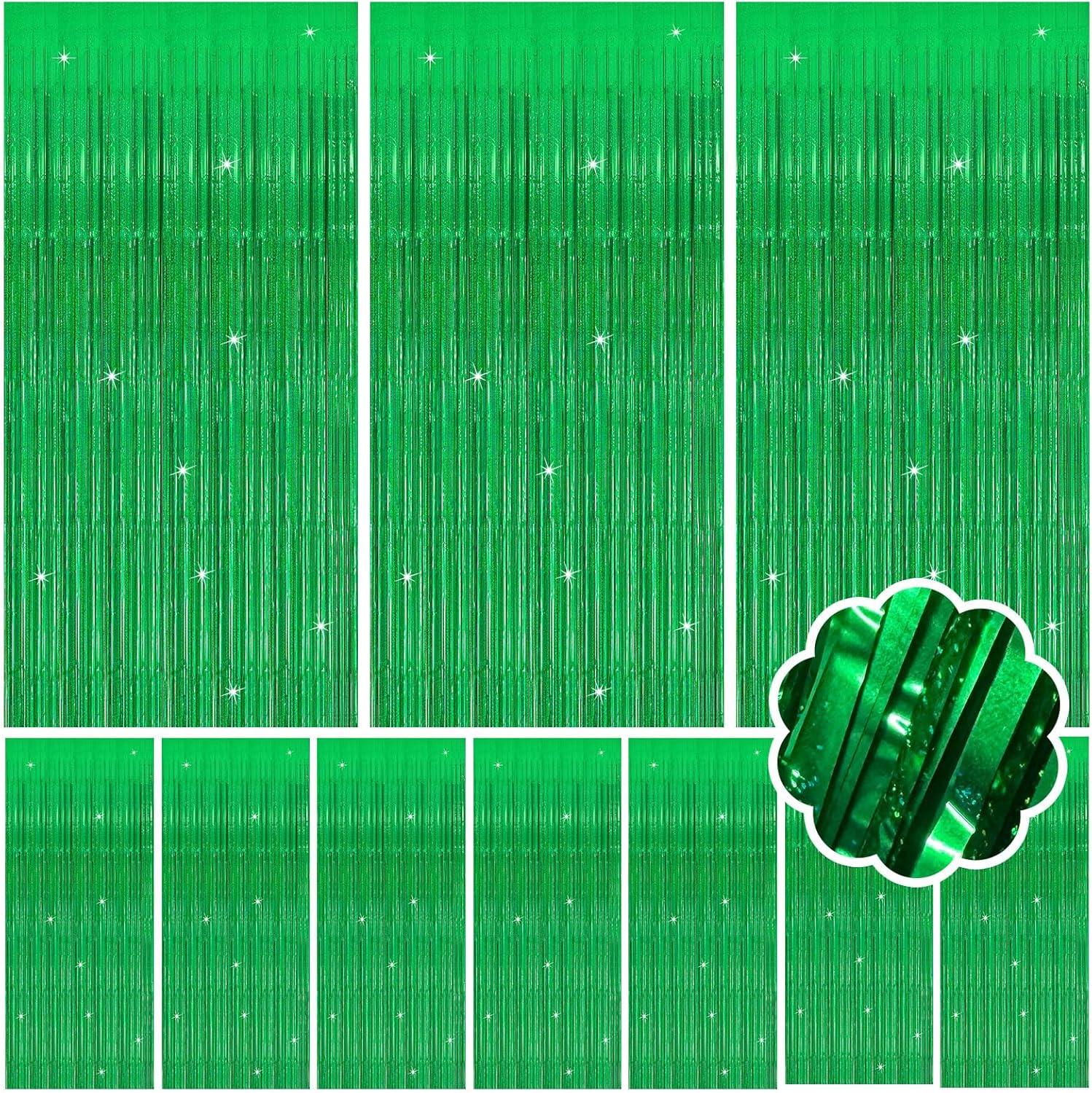 10 Pack Green Streamers Metallic Foil Fringe Curtain Backdrop for St Patrick's Day Birthday Christmas Dinosaur Animal Football Theme Party Decorations