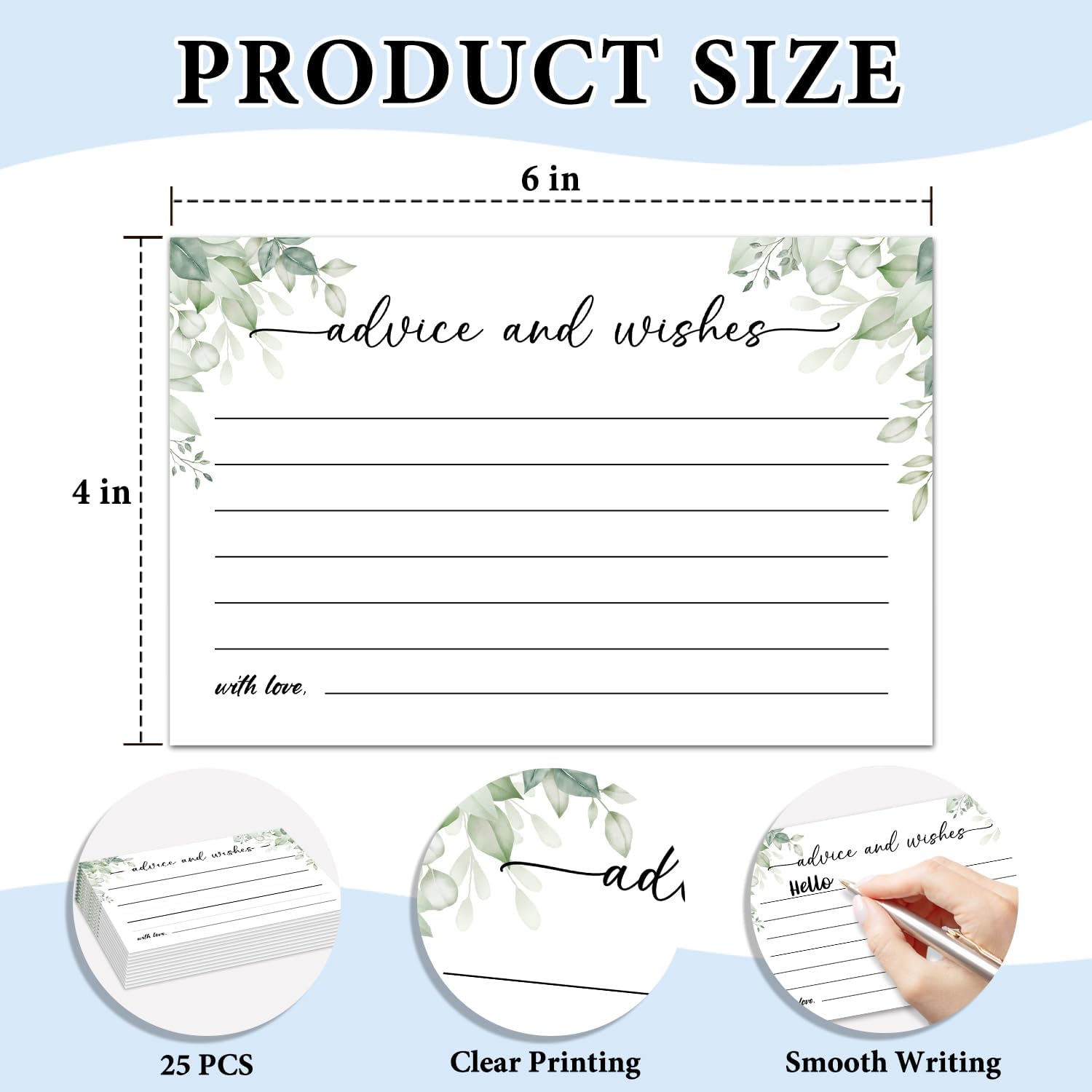 Green Left Advice and Wishes Cards for the New Mr and Mrs, Wedding, Bridal Shower, Baby Shower, Graduation, Party Decorations, 25 PCS 4x6 Inches Card-006