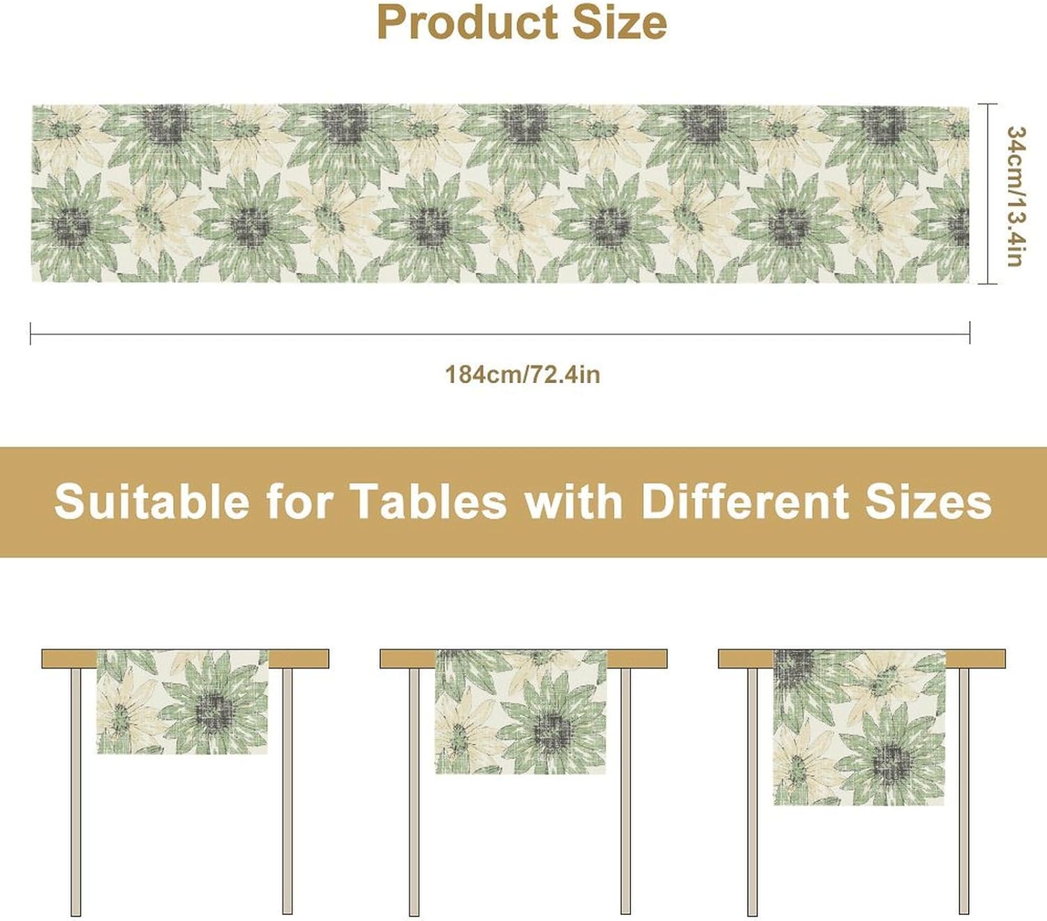 Chrysanthemum Vintage Floral Table Runner, Elegant Yellow Sunflower Spring Summer Elegant Pattern Artichokes Flower Table Runner for Party Kitchen Dining Living Room Decor, 13x70 Inch