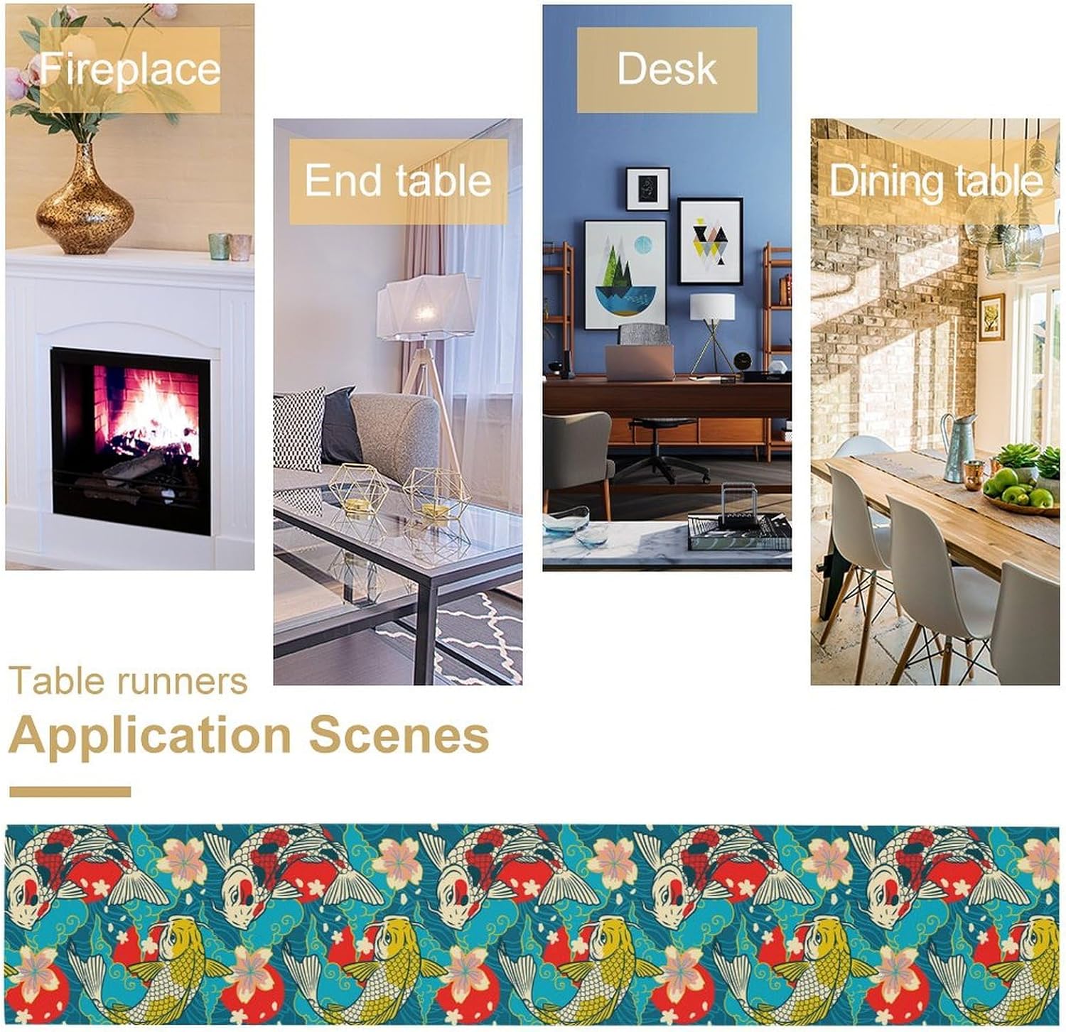Japanese Kio Fish Table Runner Oriental Tradition Cherry Art Printed Burlap Runner Home Kitchen Dining Table Living Room Decor Fabric 1 Panel W13xL60in
