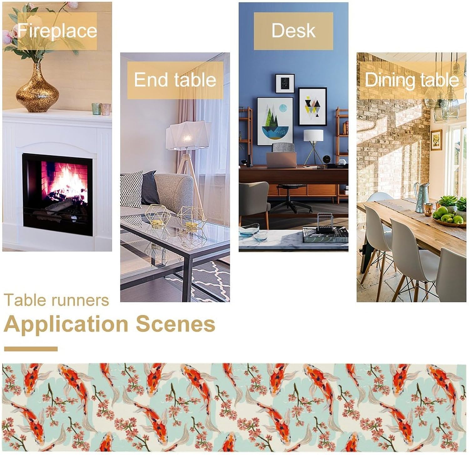 Japanese Kio Fish Table Runner Cherry Flower Art Printed Burlap Runner Home Kitchen Dining Table Living Room Decor Fabric 1 Panel W13xL108in